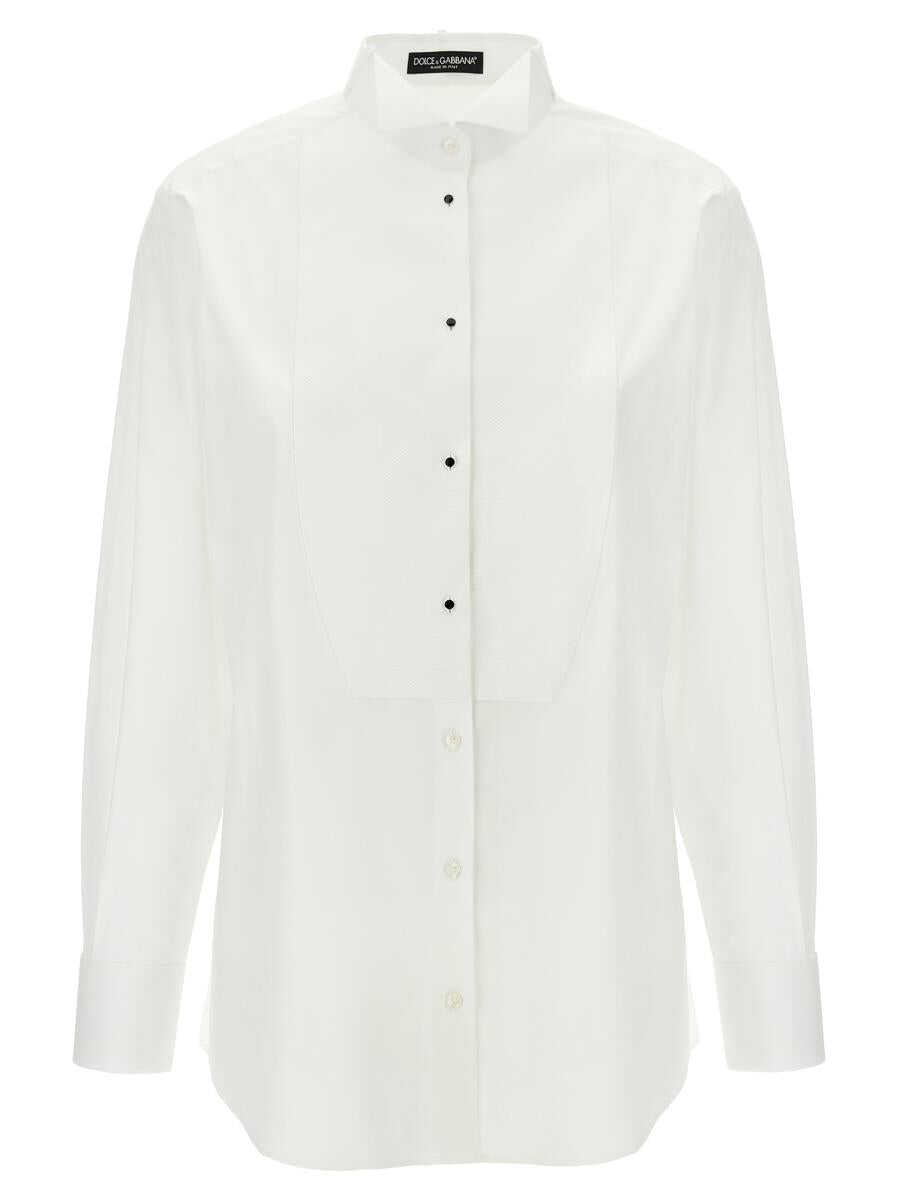 Cotton poplin shirt with piquet plastron, button closure, diplomatic collar, long sleeves with cufflinks