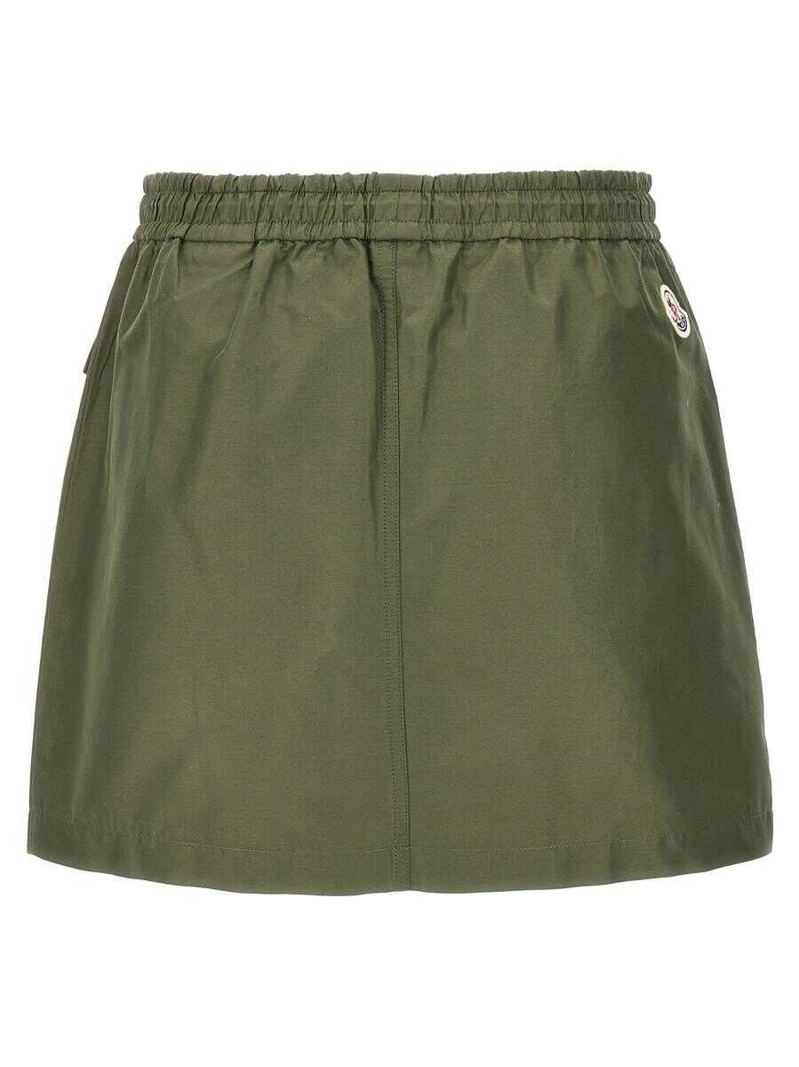 Nylon blend skirt with back logo patch, drawstring elastic waistband, pockets
