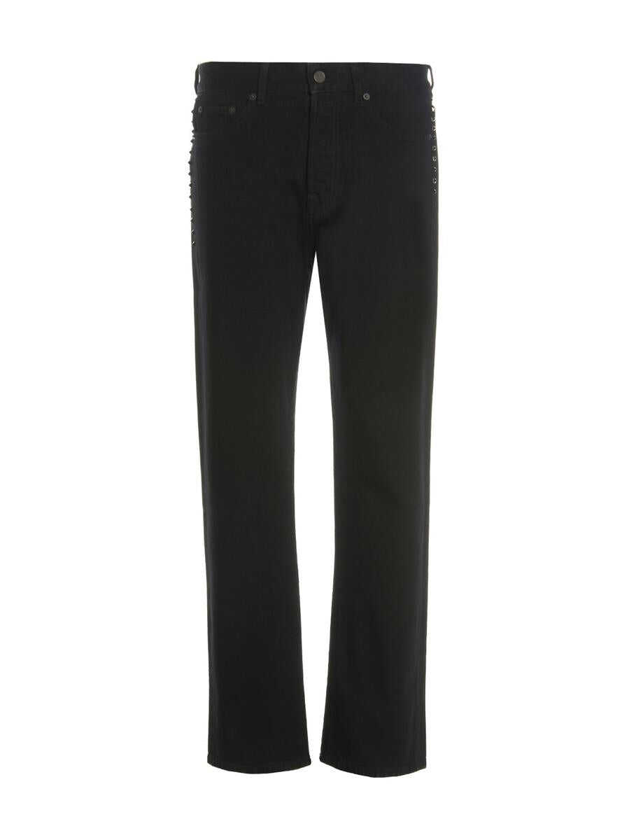 Cotton denim jeans with 'Black Untitled' studded appliqué, button closure, five pockets