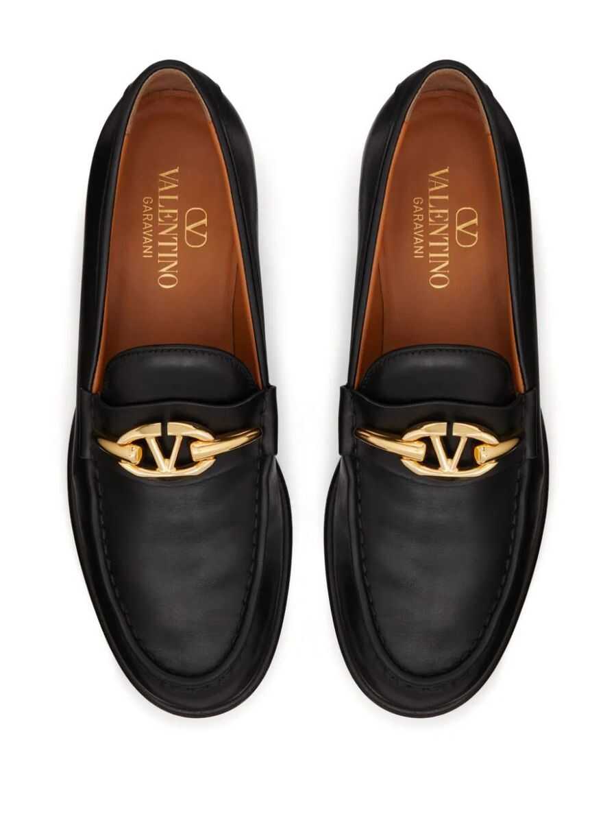 Valentino Garavani's loafers crafted in black smooth leather with the iconic gold-tone metal VLogo Signature detailing. Featuring a round-toe silhouette, leather lining and leather sole.