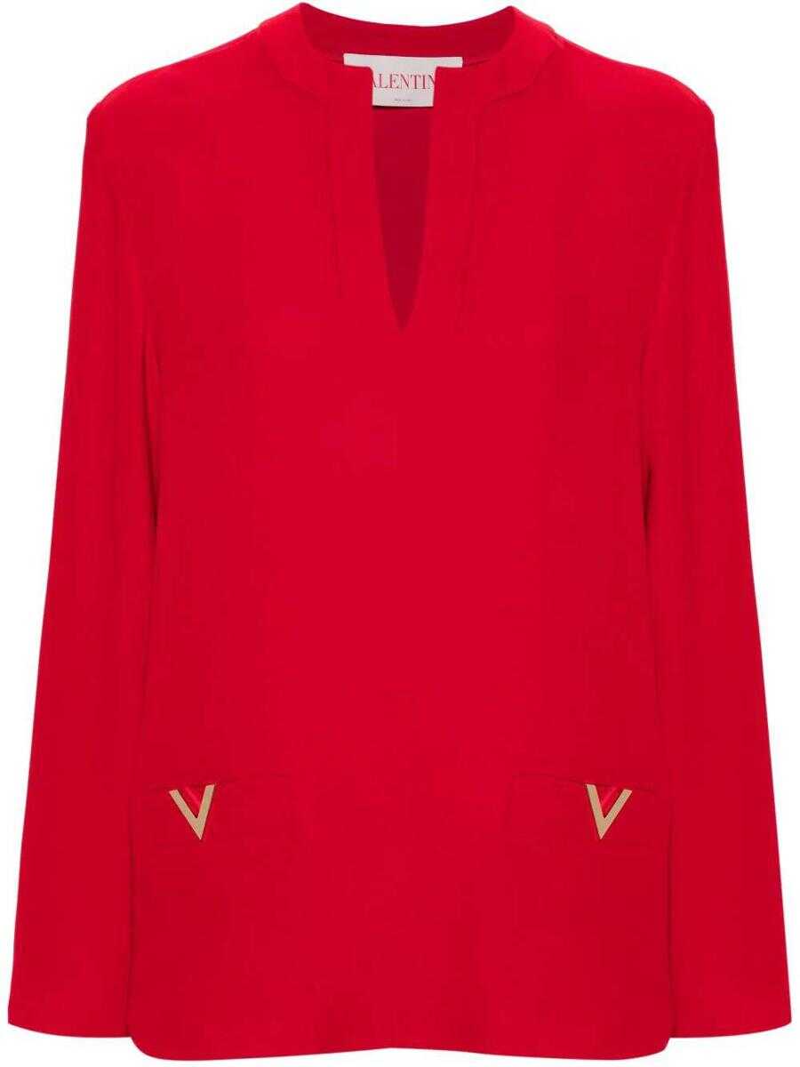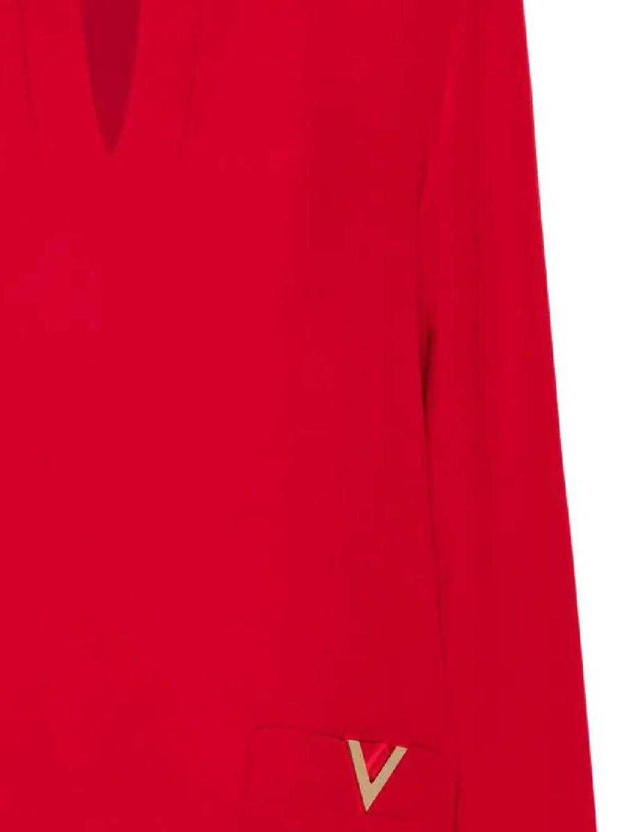 rose red silk crepe texture signature V logo plaque V-neck long sleeves two front welt pockets rear curved hem SLEEVE LENGTH: 58.5 Centimetres HIPS: 106.0 Centimetres Length: 67.0 Centimetres WAIST: 102.0 Centimetres