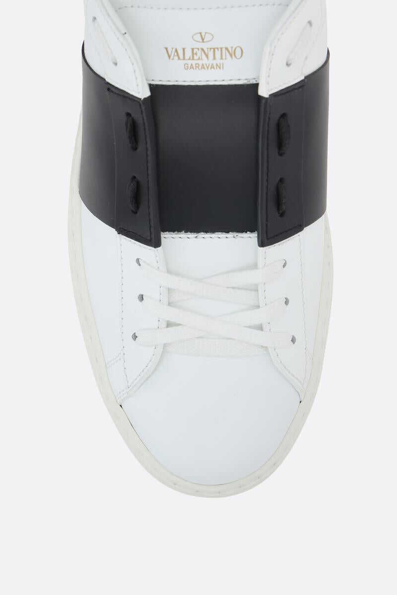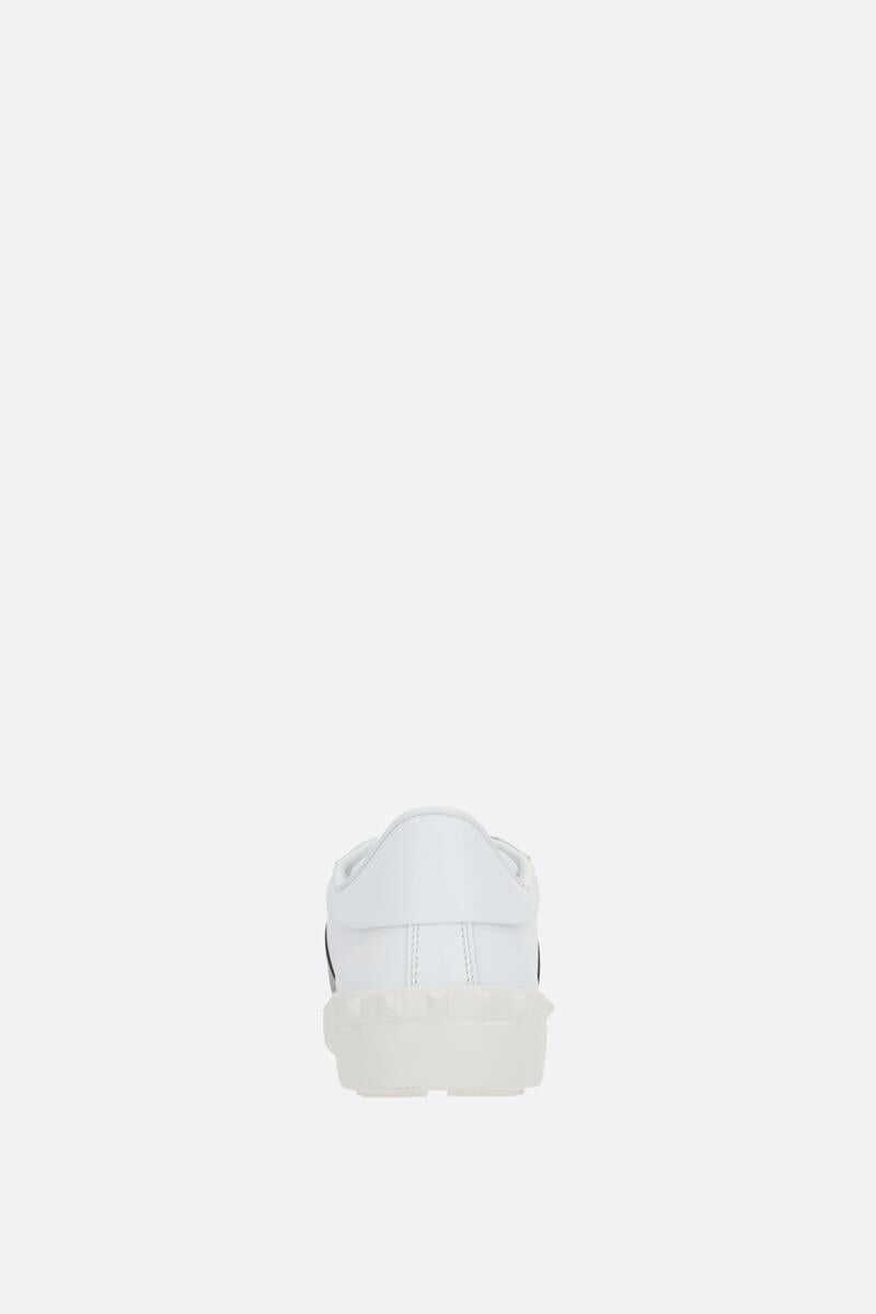 Valentino Garavani's low-top sneakers crafted in white smooth leather with contrasting bands in black leather. Featuring lace-up closure, a round-toe silhouette, leather lining and rubber sole. The design is completed by rubber studs around the heel. The sneakers come with an additional set of shoelaces.