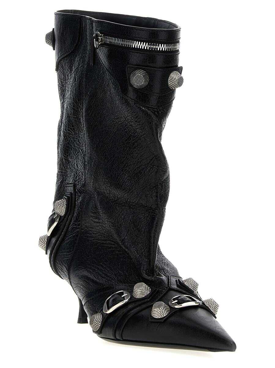 Arena 'Cagole Wide' lambskin ankle boots with stud application, front zip detail, heel