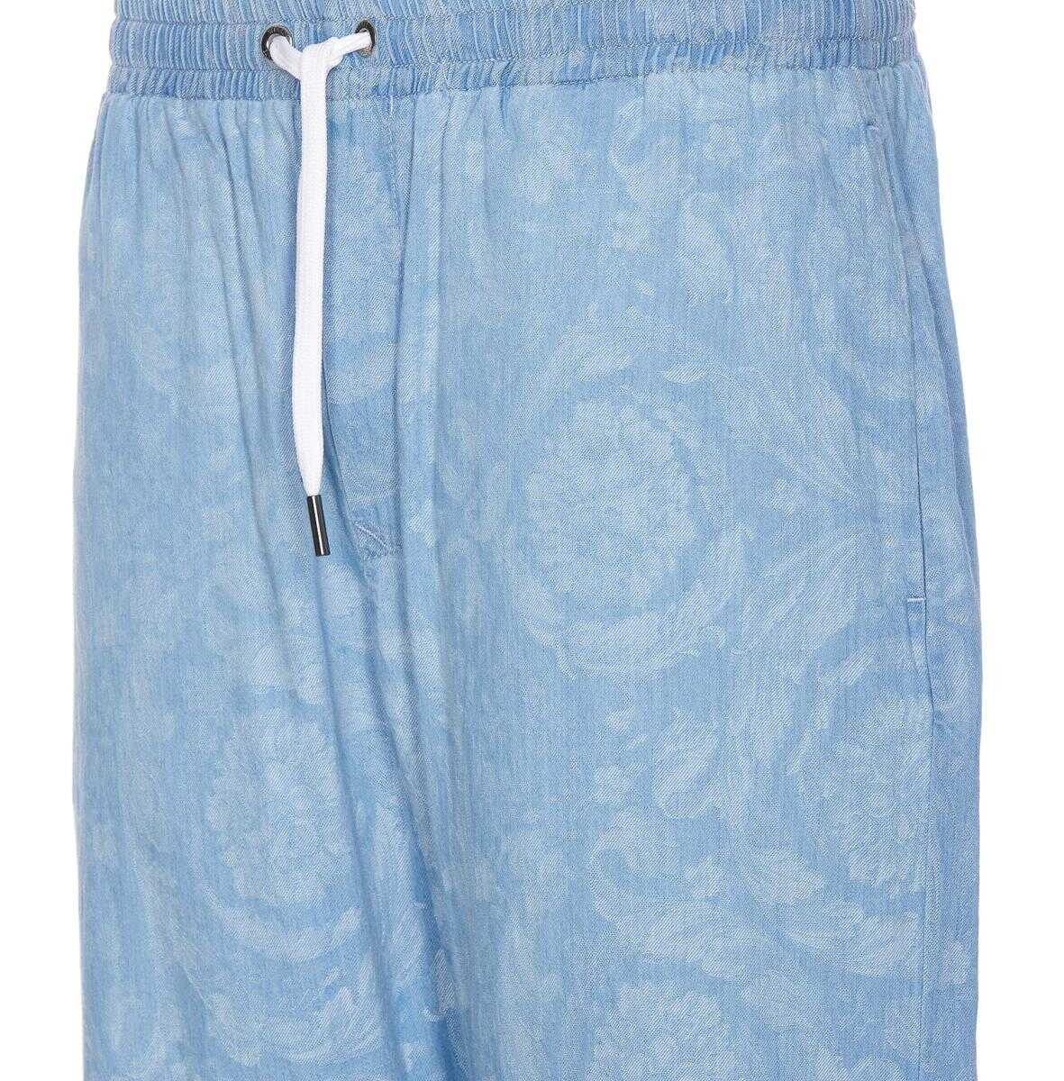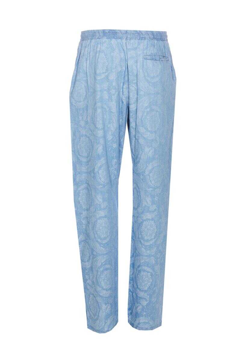 Versace Light Blue Pants, Baroque Print, Elasticized On Waist, Coulisse Closure, Lateral Pockets, One Pocket On The Back, EU SIZE (IT)