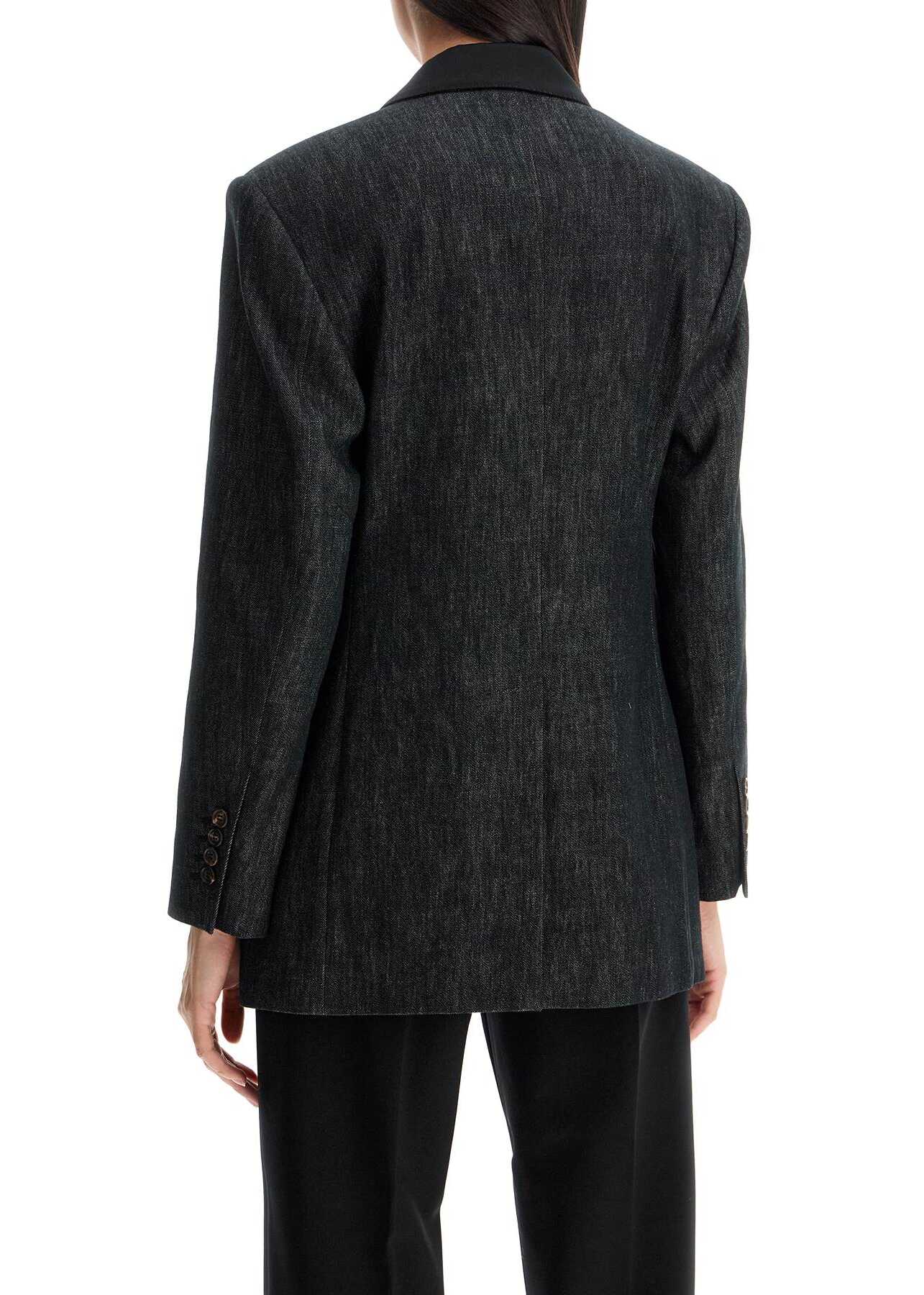 This Brunello Cucinelli double-breasted blazer is made of pure cotton twill with a denim effect, adorned with the iconic monile embroidery on the back collar. It features peak lapels in satin crepe, flap pockets, a central slit at the back and a slightly oversized fit characterized by pronounced shoulders and a fitted waist to enhance the silhouette. The interior is fully lined. The model is 177 cm tall and wears an IT size 40.