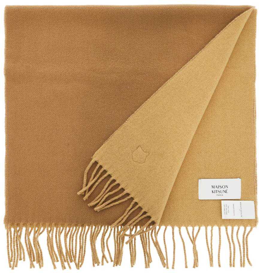 This double-faced scarf by Maison Kitsuné is made of pure virgin wool and features a contrasting inner side, a Bold Fox Head patch at the bottom, and fringed edges.