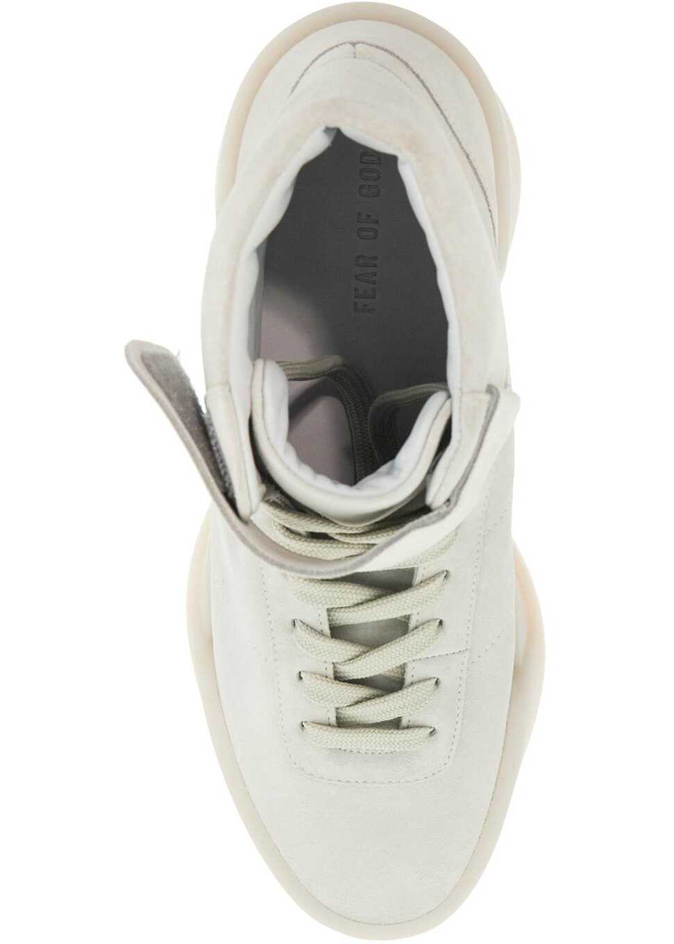 The Fear Of God Aerobic High sneakers are made of suede leather, featuring a clean and timeless design with an ankle strap and velcro closure. The interior is lined with soft leather and the rubber sole has a contrasting logo patch on the back. These sneakers are perfect for any occasion, adding a touch of style to your outfit while providing comfort and support. Elevate your sneaker game with these high-quality and versatile shoes from Fear Of God.