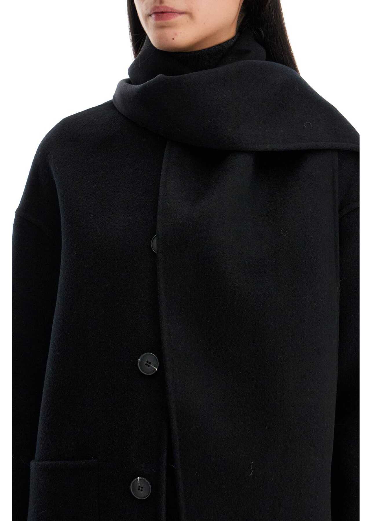 The Dynamis Studio's Antwerp single-breasted coat is made of wool with a boxy cut, featuring an incorporated and removable shawl through buttons. Complete with patch pockets. The model is 177 cm tall and wears size IT 38.