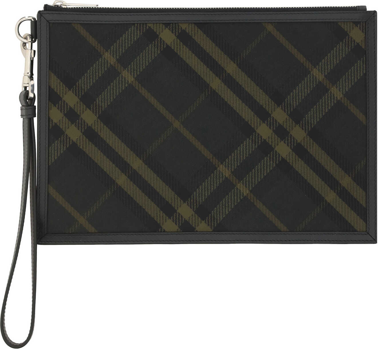 Pouch Bag by Burberry, top zipper closure, removable leather puller for carrying it by hand, iconic all-over printed Archivio Check pattern.