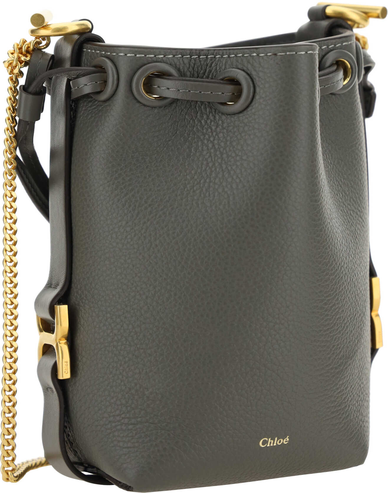 Calfskin Micro Marcie Shoulder Bag by Chloé, gold-tone chain shoulder strap, a leather top drawstring fastening, a contrasting branded press-stamped logo to the front, a grained leather design and gold-tone hardware.