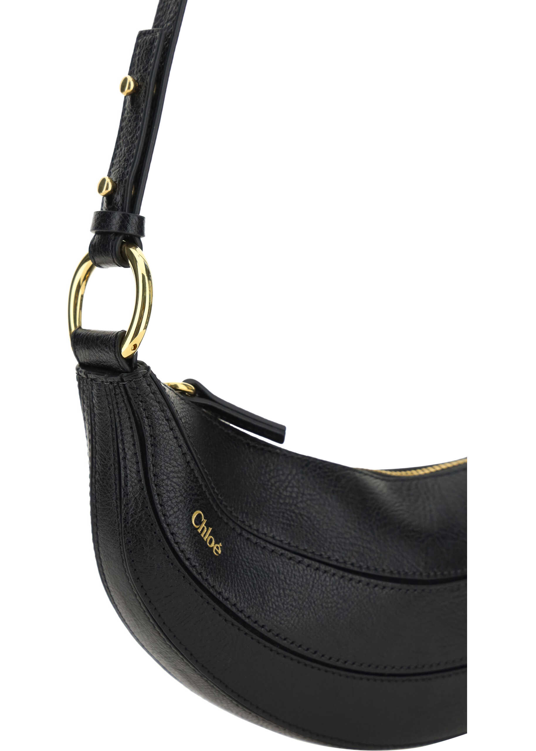Leather Banana Shoulder Bag by Chloé, top zipper closure, one adjustable and removable flat handle, iconic three-dimensional brand monogram applied to the front, checkered leather design, single compartment.