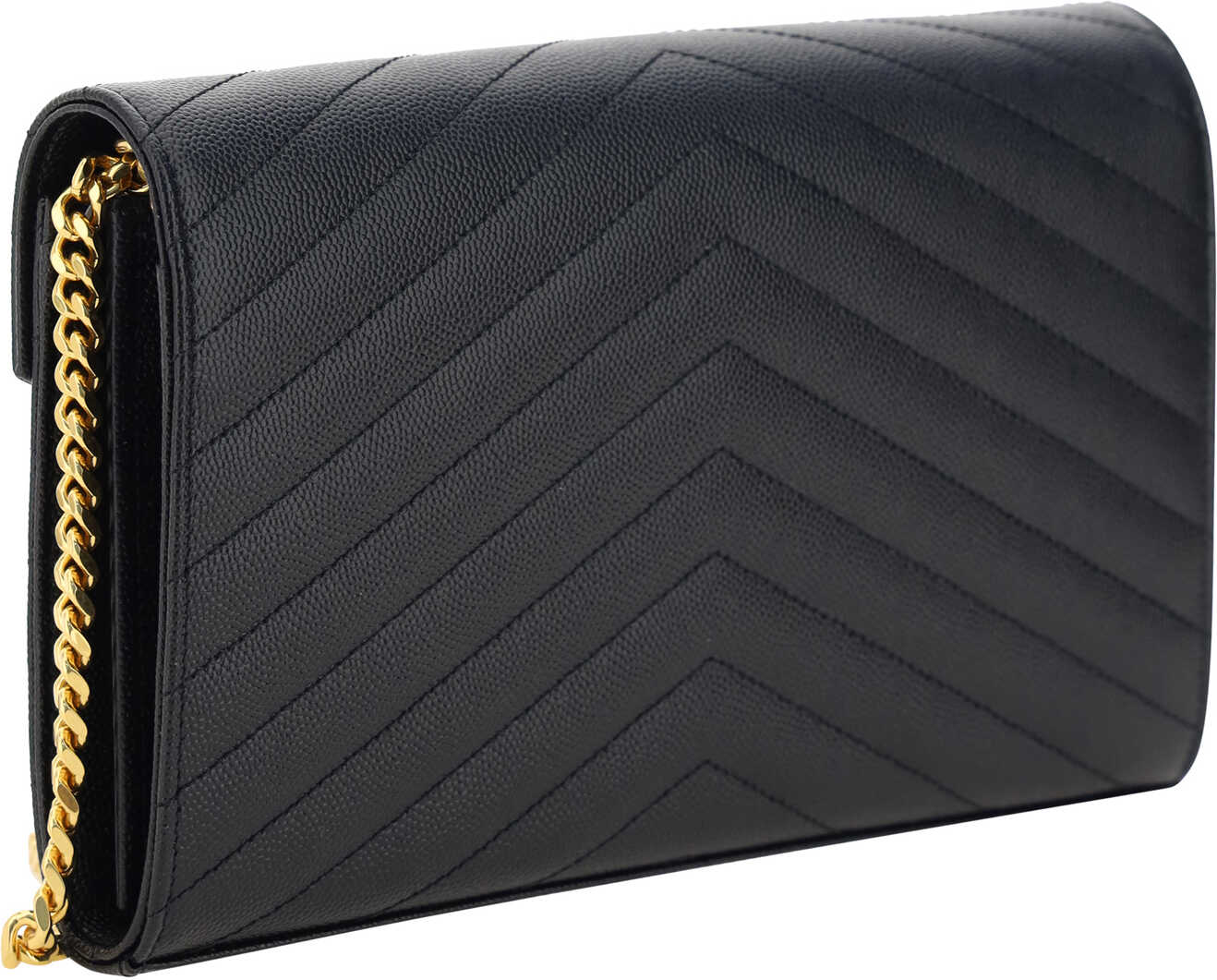 The Monogram leather Shoulder Bag by Saint Laurent features a front snap-button closure for convenience and security. The leather design is enhanced by the matelassé print, which adds a sleek and sophisticated texture. Inside, it features card slots, a central zippered pocket and visible brand logo. On the front, there is a plaque with the iconic golden logo. The golden chain shoulder strap with leather handle lends a touch of luxury, making this bag ideal for any elegant occasion.