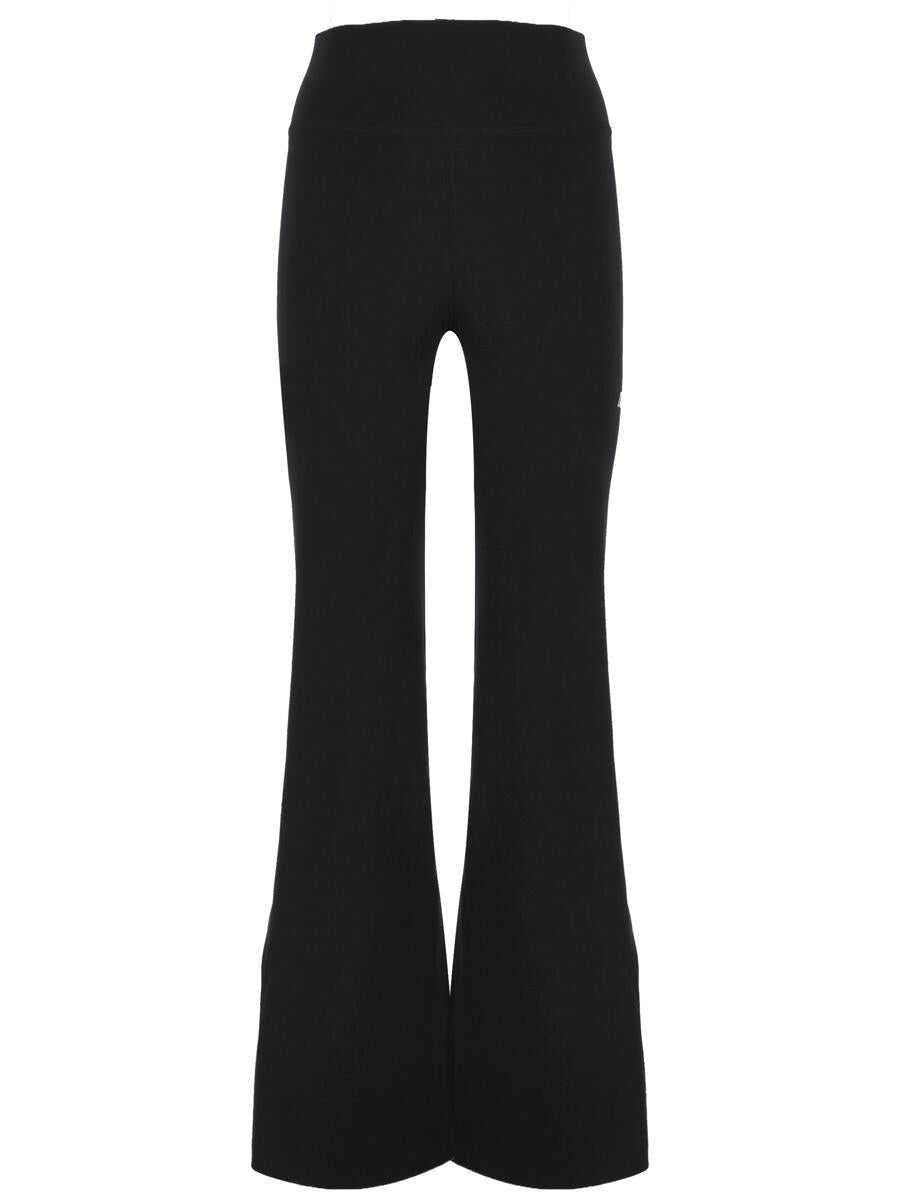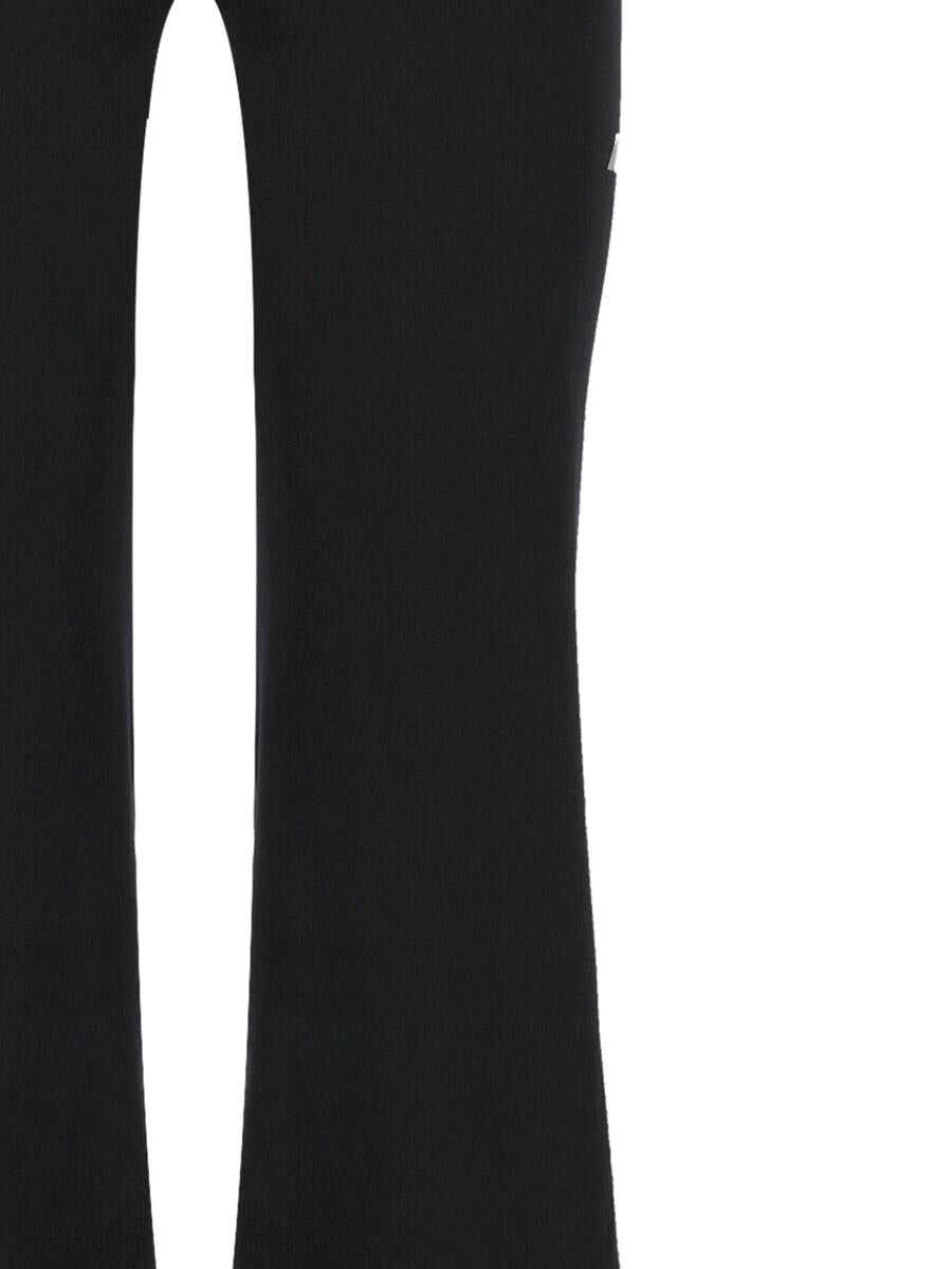 black stretch-design logo print to the side elasticated waistband flared hem long length
