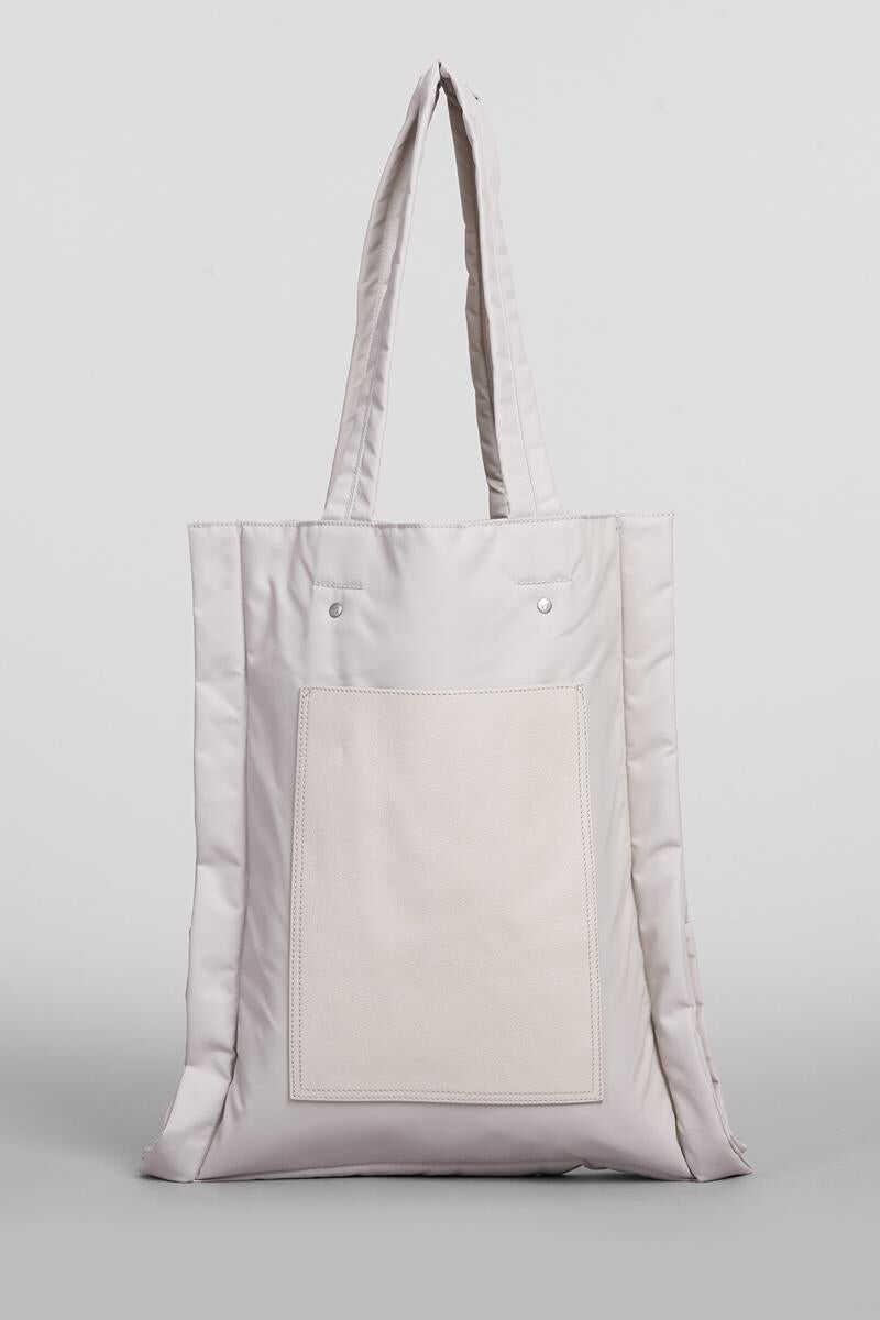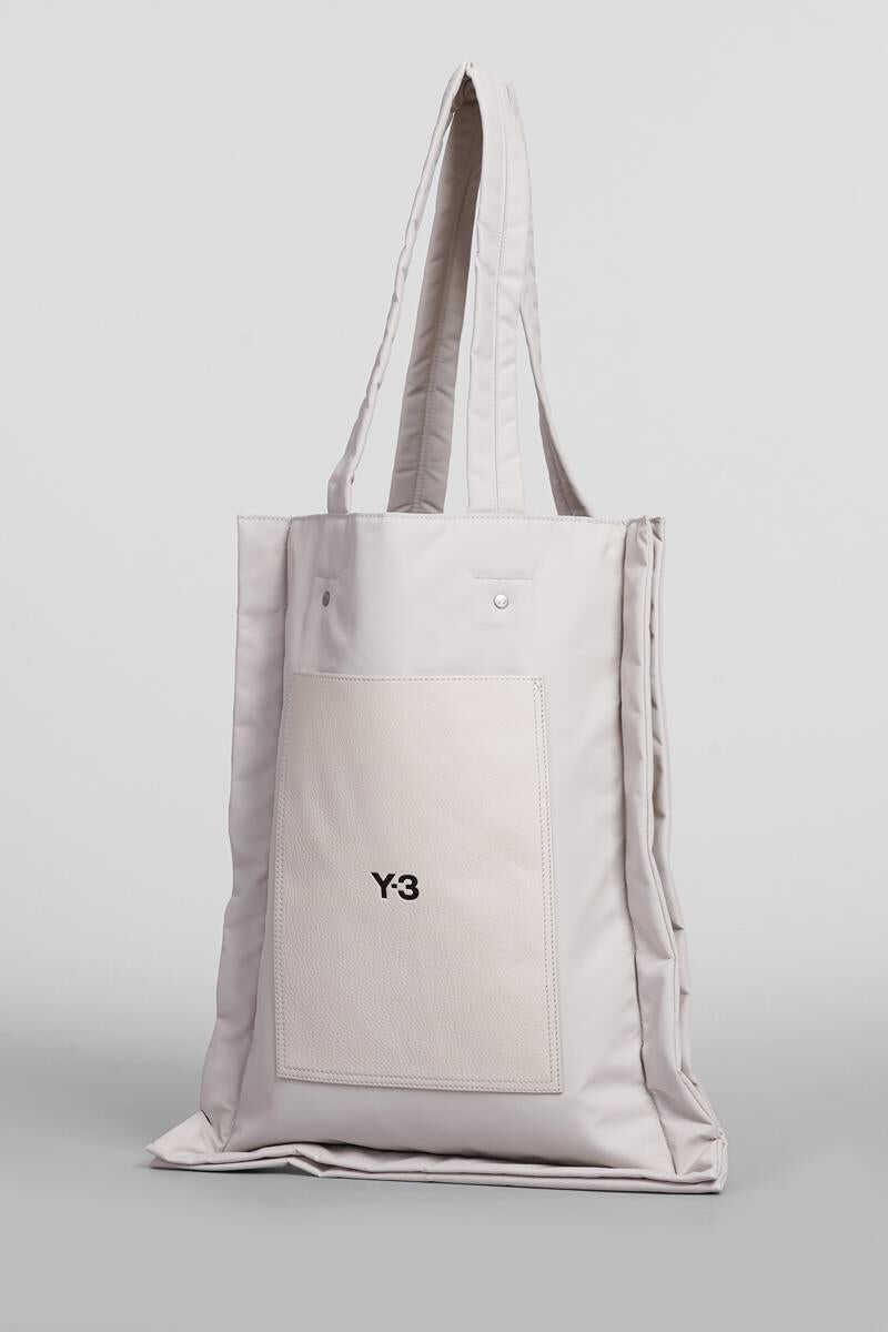 Tote in grey polyamide, double handle, magnetic closure, leather detail, logo print on front, internal zip pocket, Made in China, Height 500 mm, Width 430 mm