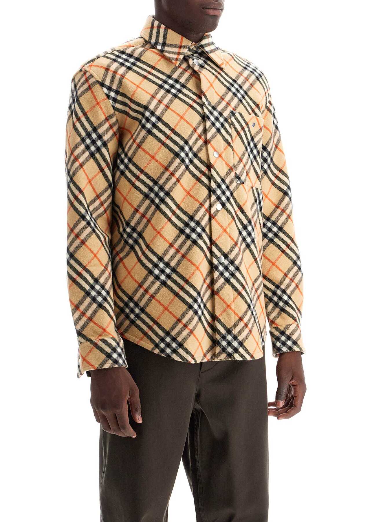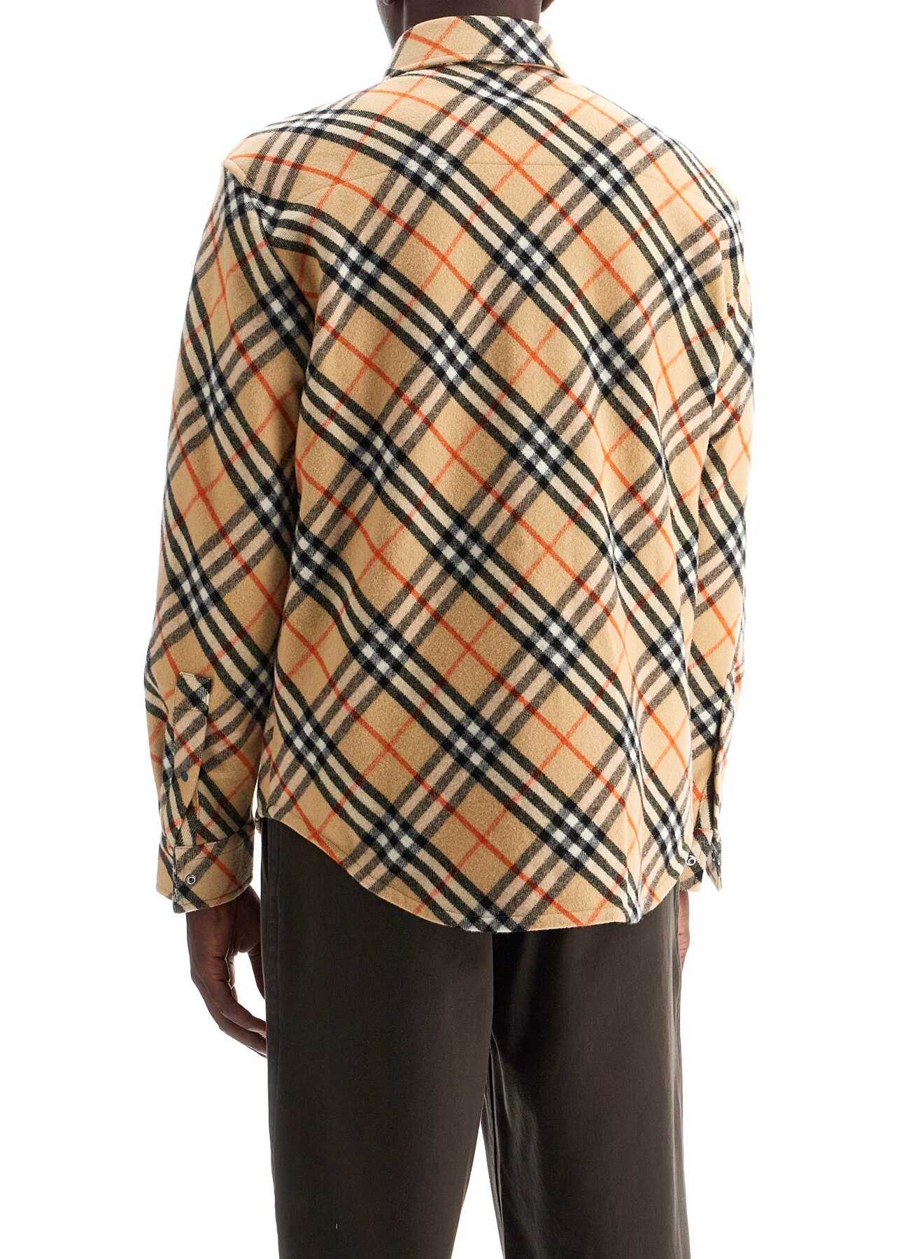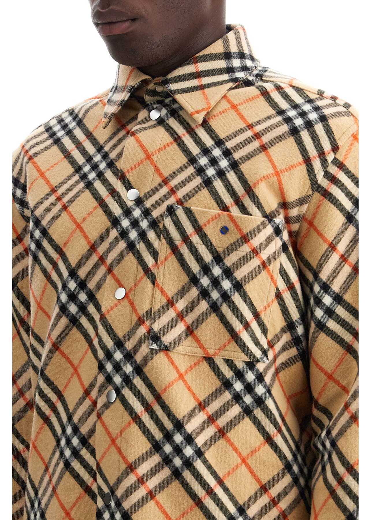 This Burberry Check flannel overshirt is made of wool and features snap buttons. It has a straight and relaxed fit with a classic collar and a chest pocket. The model is 187 cm tall and wears size M.