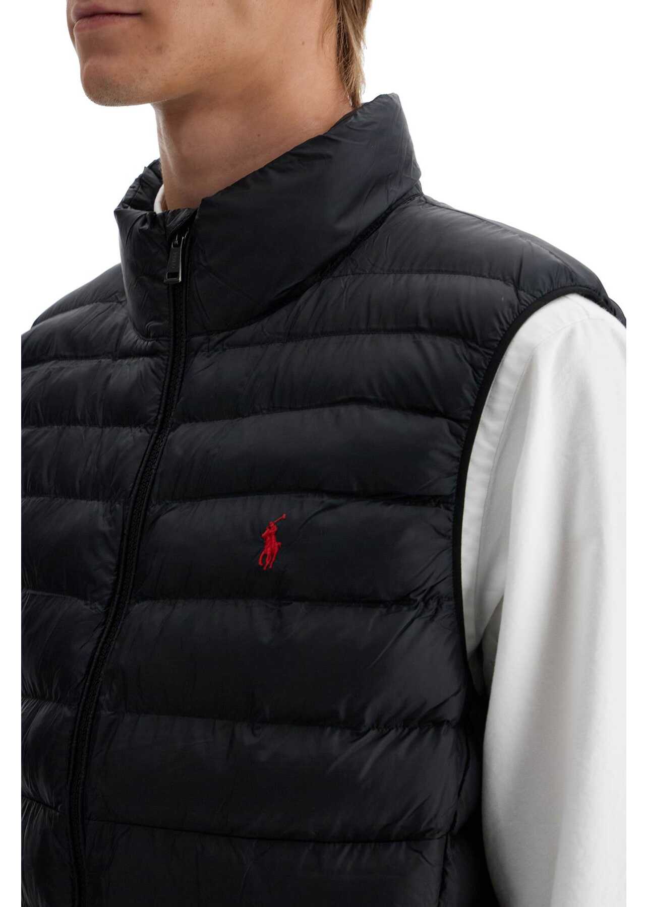 This Polo Ralph Lauren quilted vest is made of recycled nylon with a light padding of recycled polyester. It features a two-way zip closure, stand-up collar, side pockets with zippers, and an embroidered logo on the chest. The garment can be folded into its right pocket for easy storage. Relaxed fit. The model is 187 cm tall and wears size L.