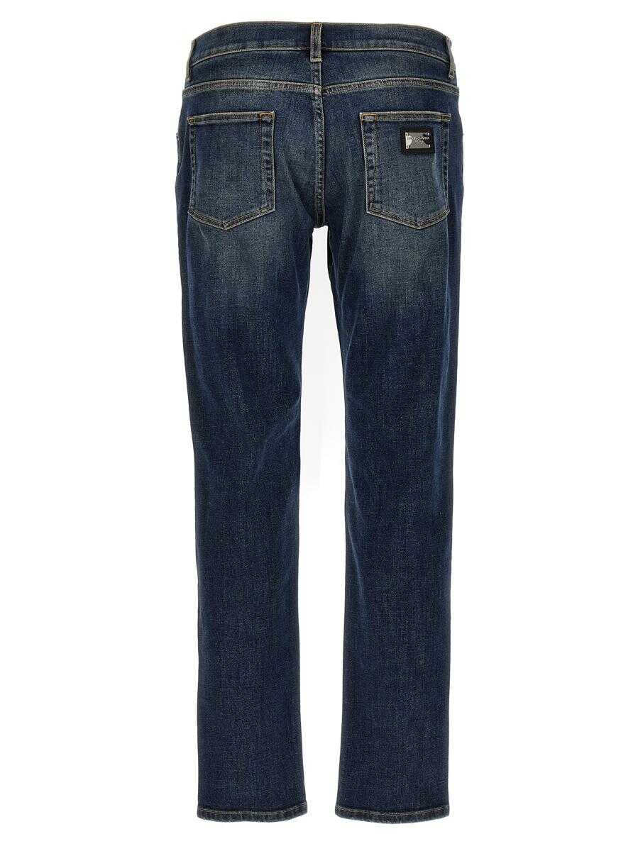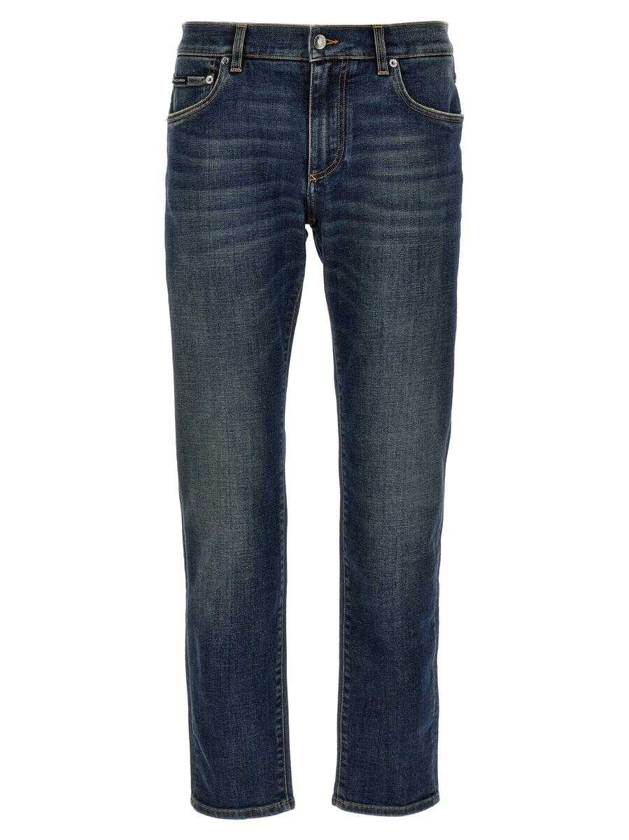 DG Essential jeans in cotton denim with zipper and button closure, five pockets, and logo plaque on the back