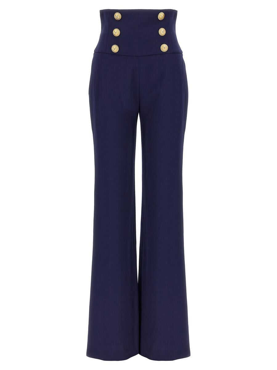 High-waisted viscose pants, gold metal 'Chiocciola' buttons, pockets, and back zip closure