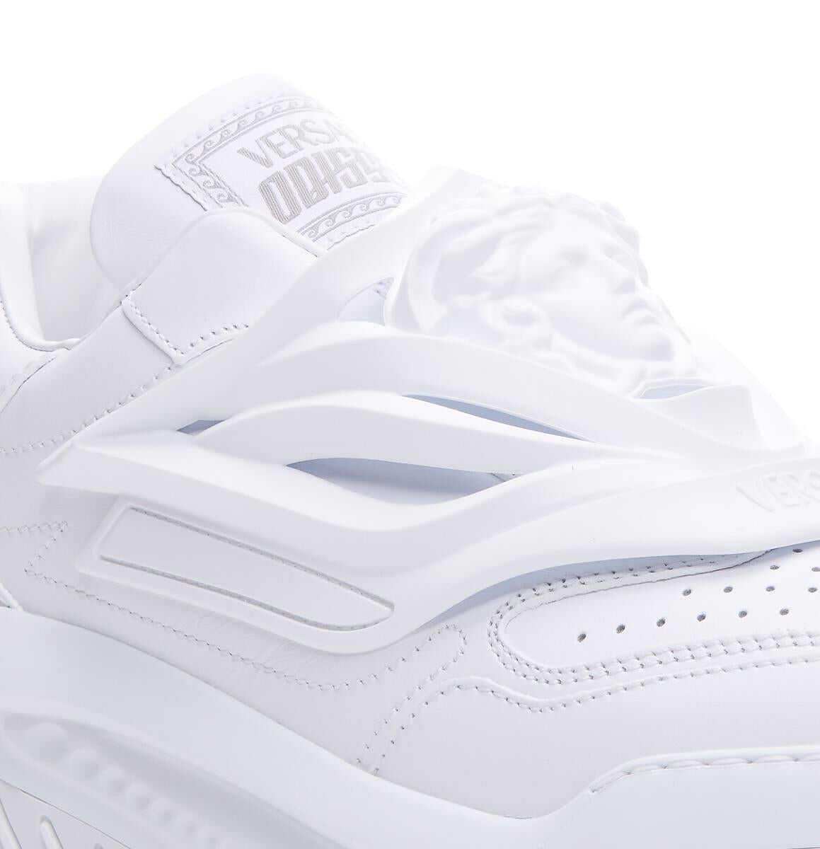 Versace White Odissea Sneakers, Round Toe, Leather Upper And Rubber Sole, Slip On Closure, Frontal And Back Logo, EU SIZE (IT)