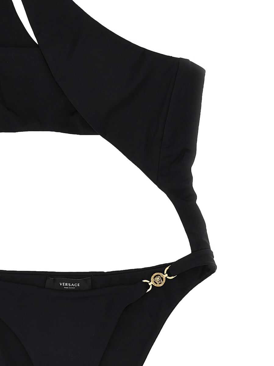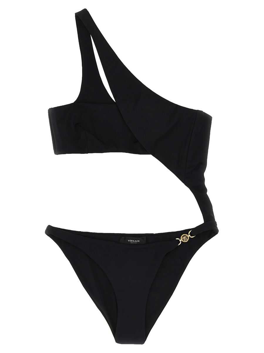 Stretch fabric one-piece swimsuit featuring cut out details and 'Medusa' metal details
