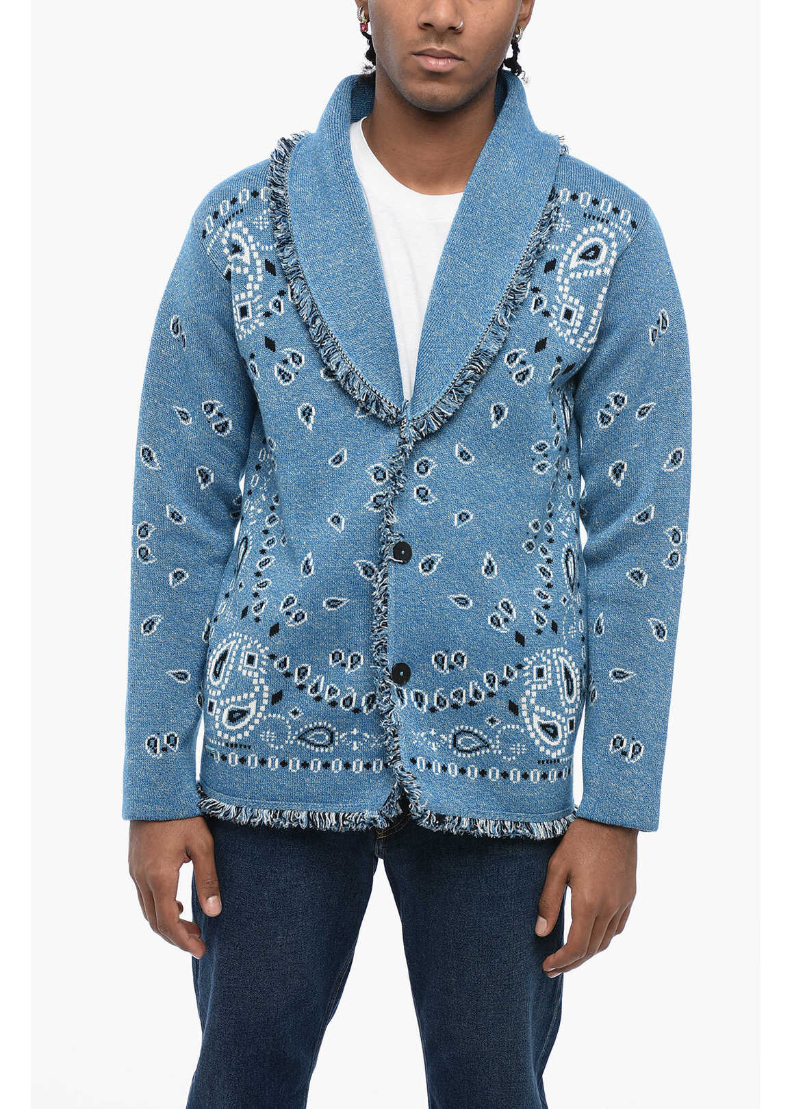 Fringe Buttons Printed pattern Deep Long sleeves Cardigan Light blue Made in Italy Autumn-Winter Materials: 80%WS 20%LI Product code: P613596