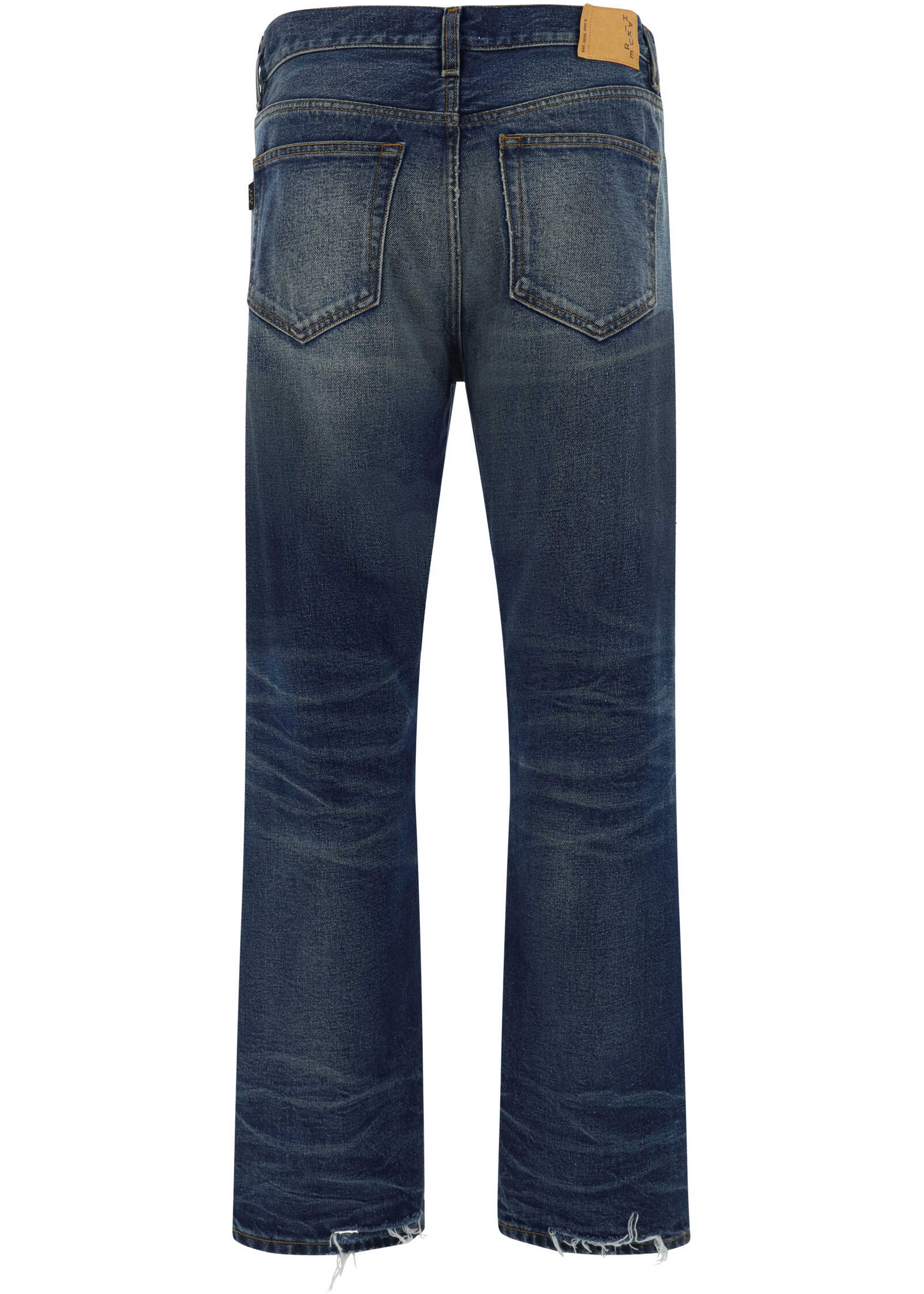 Cotton Blake Jeans by Haikure, featuring a five-pocket straight fit, front button closure, front button closure, belt loops for waistband, iconic leather patch with signature brand pressure print applied at back, monochrome vintage effect pattern, regular fit.