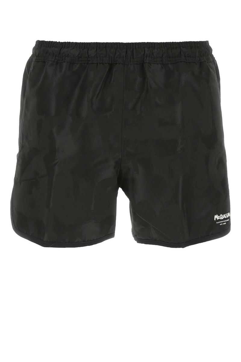 Graffiti swim shorts from Alexander McQueen featuring jet black, signature Graffiti print, logo print to the front, elasticated waistband and knee-length. Be mindful to try on swimwear over your own garments..