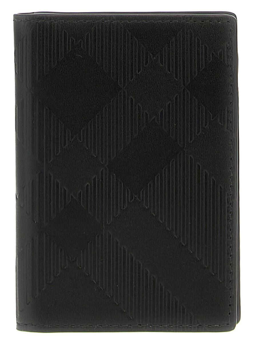 Check and embossed leather card holder