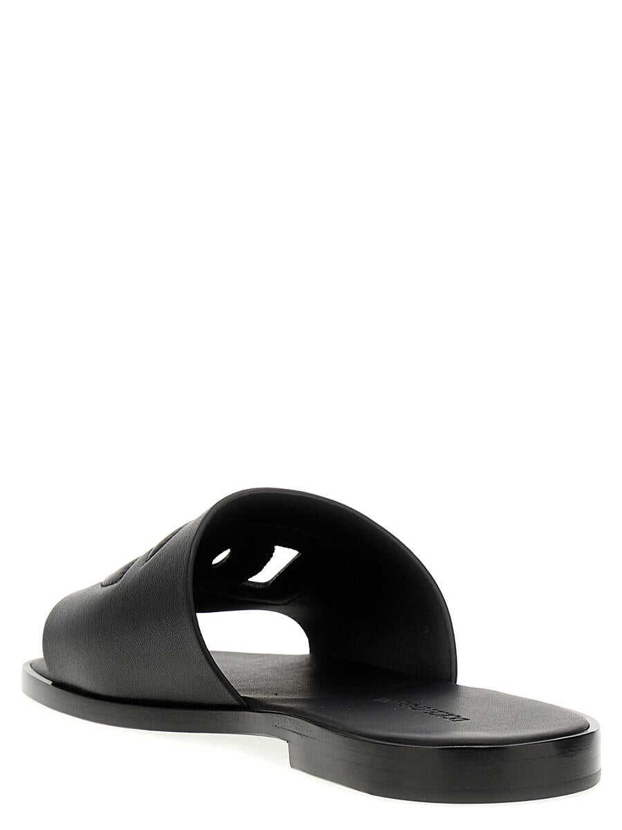 Leather slides with logo and a leather sole
