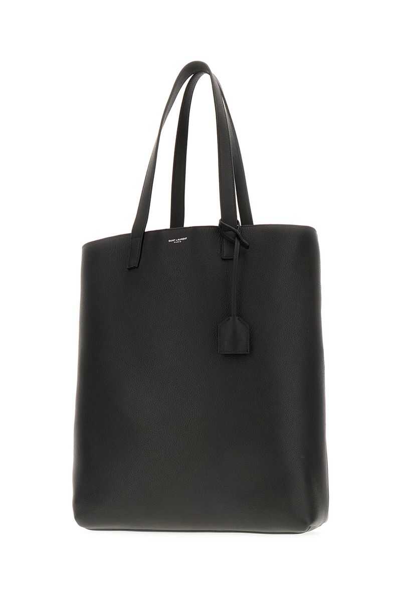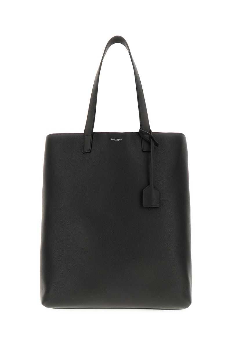 'YSL BV Bold' leather shopping bag with front logo print, double handle, snap button closure, removable leather-covered keyring, removable inner clutch