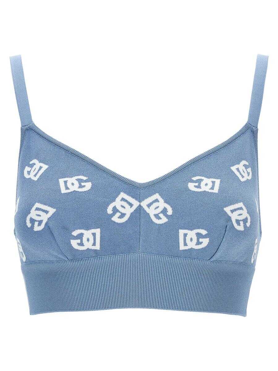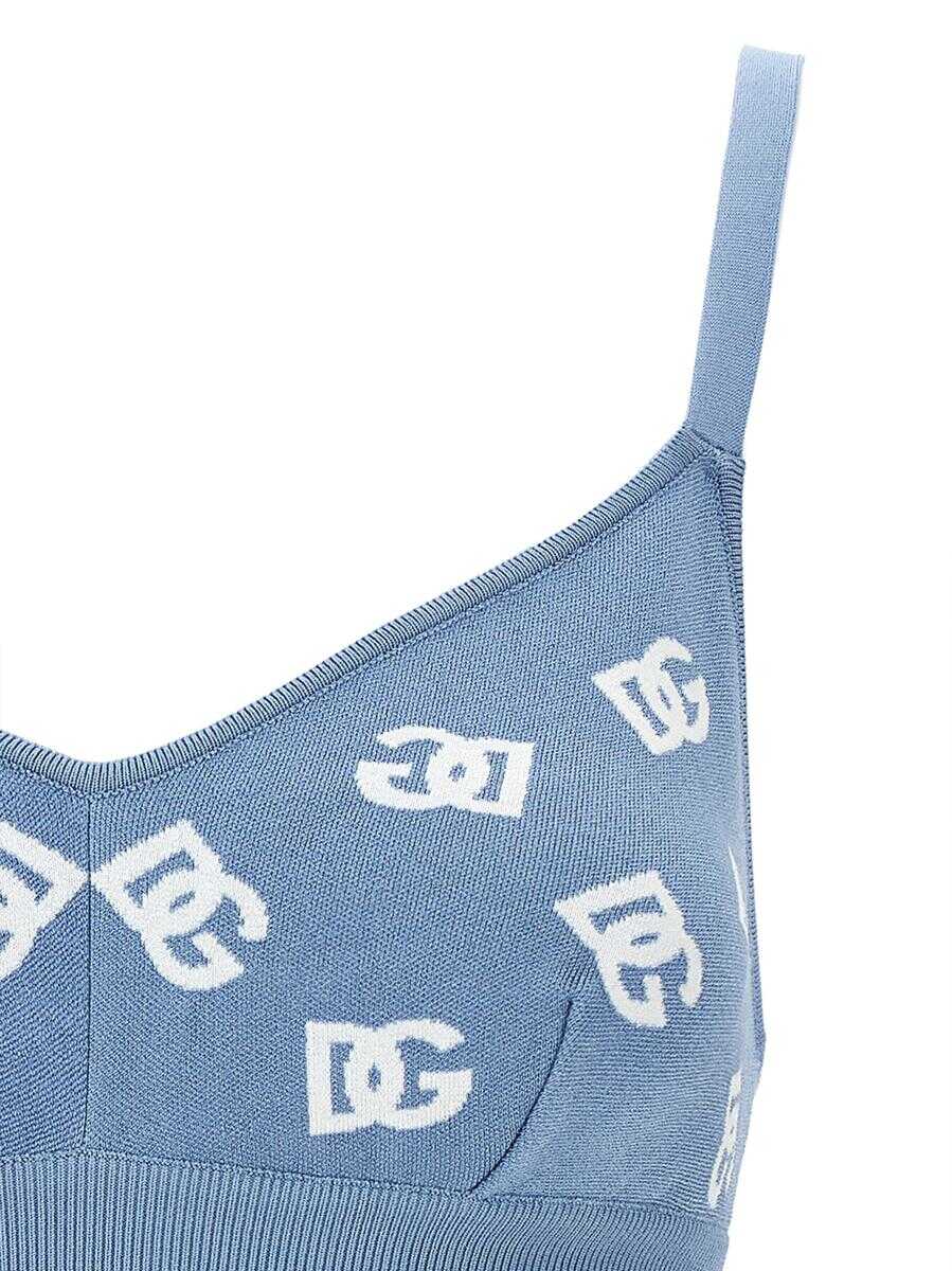 Viscose blend cropped top with all-over jacquard logo, V-neck, thin straps