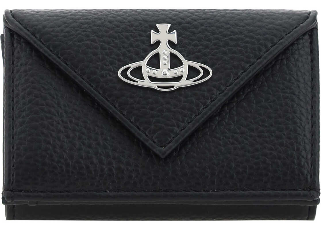 Leather Envelope Wallet by Vivienne Westwood, trifold design, bill compartment, snap-button opening, Orb logo plaque applied to front, hammered texture, iconic brand monogram stamped inside.