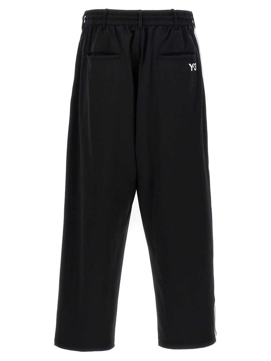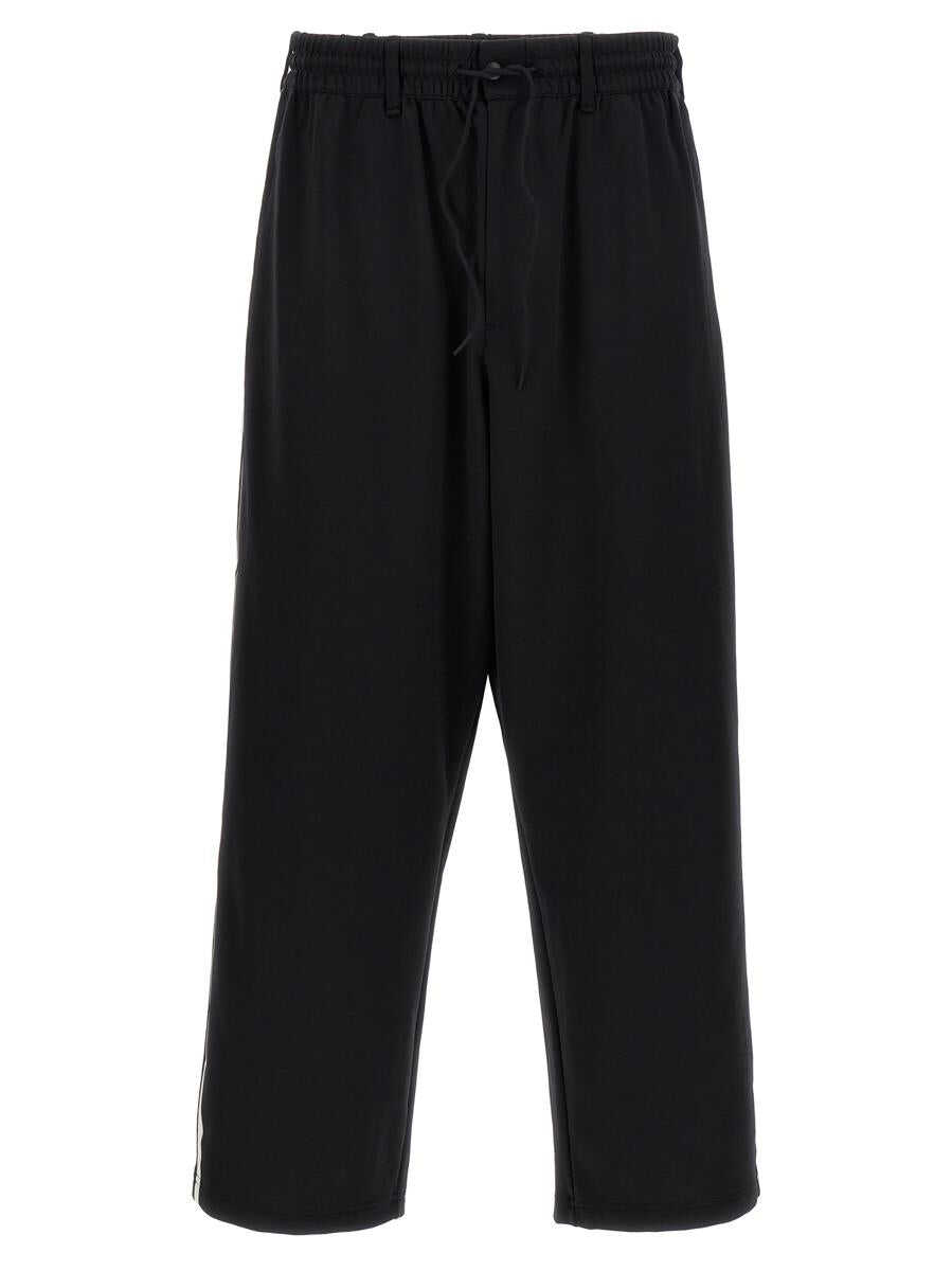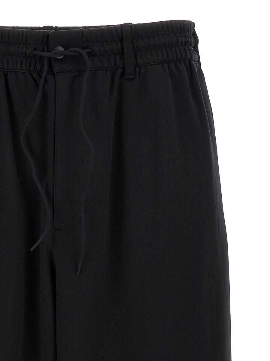 'M Es Tp' joggers in technical fabric with zip and button closure, drawstring elastic waistband, belt loops, pockets, contrasting side bands, back logo print