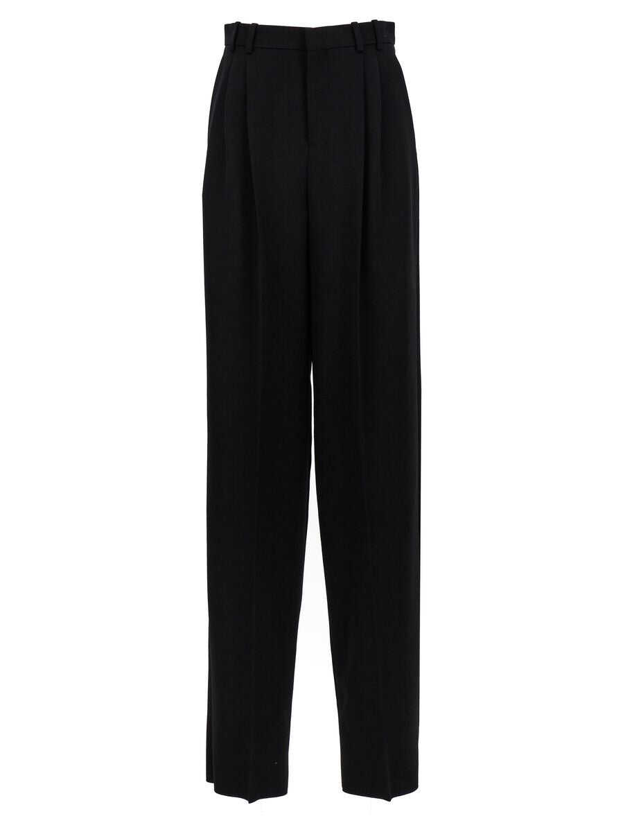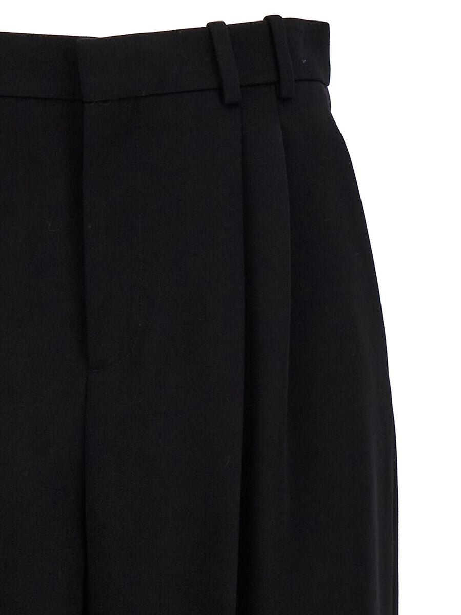 black wool grain de poudre straight leg high-waisted belt loops hook and zip fly fastening two side slit pockets two rear welt pockets