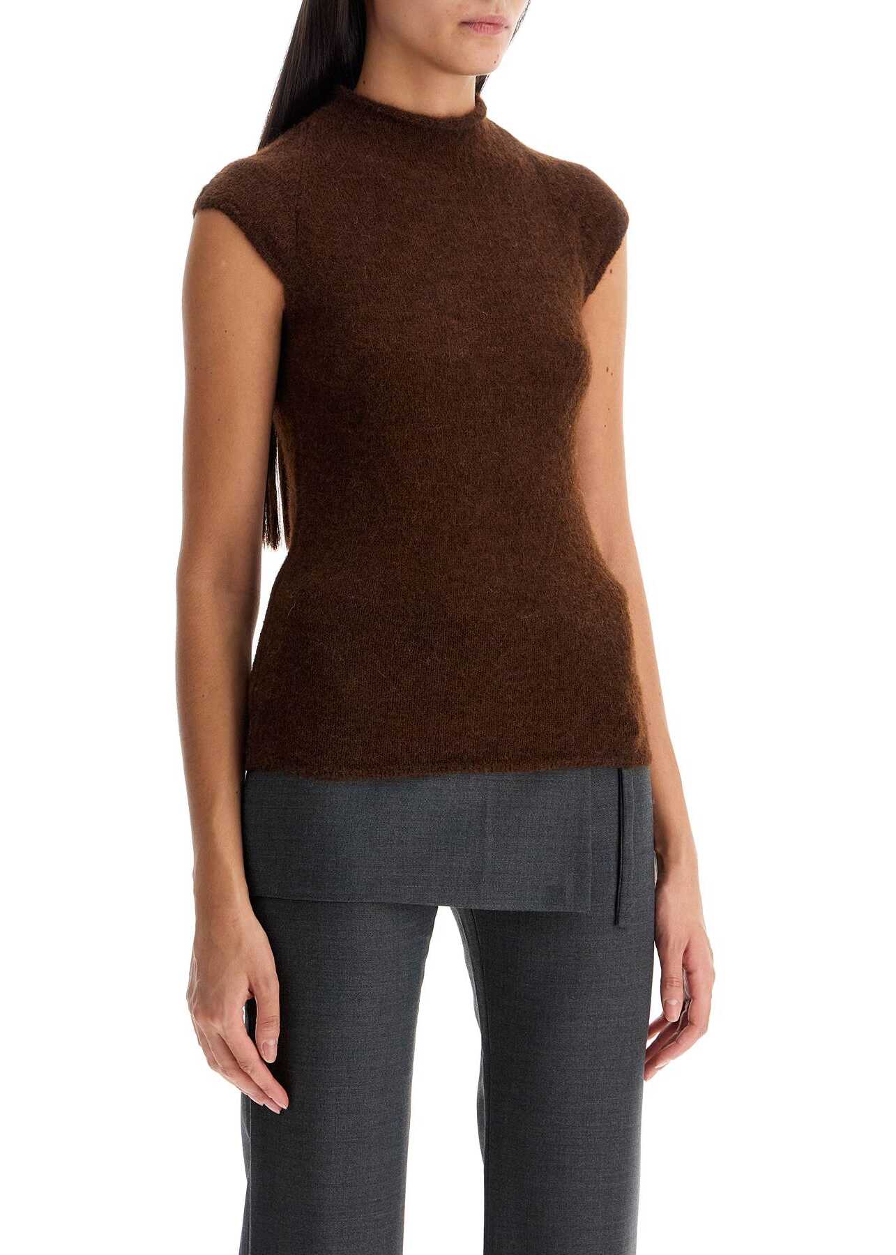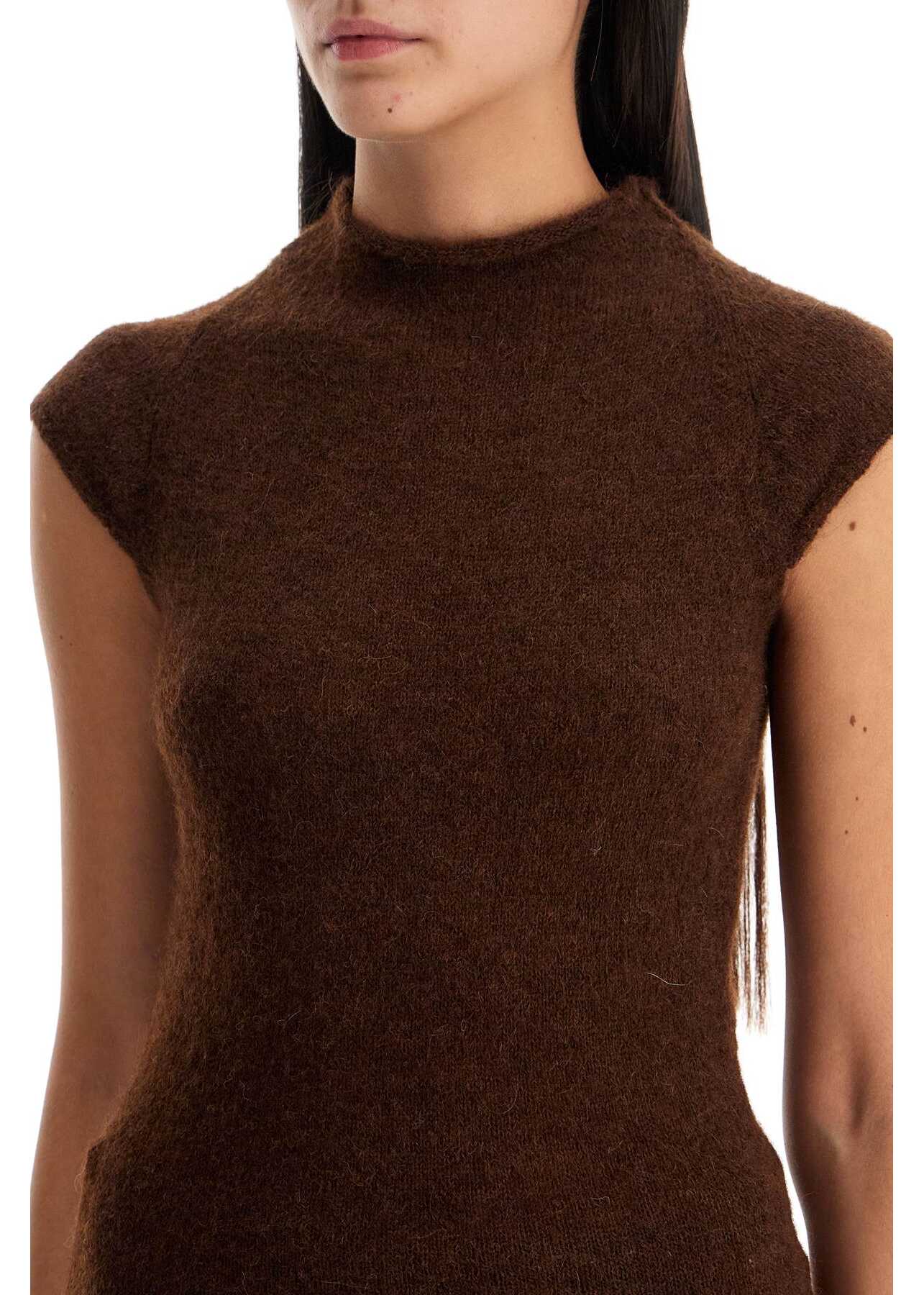 This Paloma Wool top is made of a soft alpaca blend knit, featuring a fitted silhouette. The model is 177 cm tall and wears size XS.