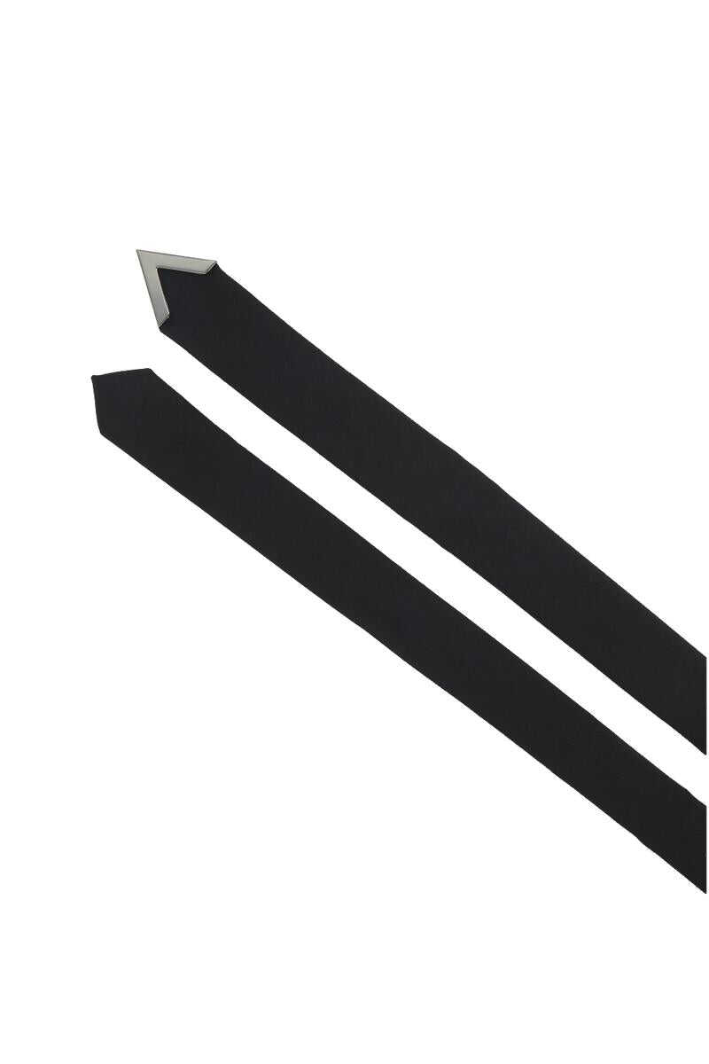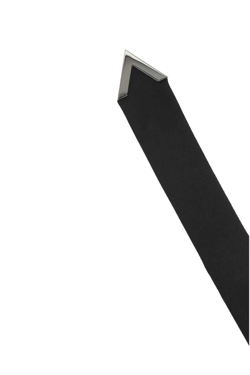 Valentino Garavani's thin tie crafted in black wool and silk with ruthenium-tone metal V detail.