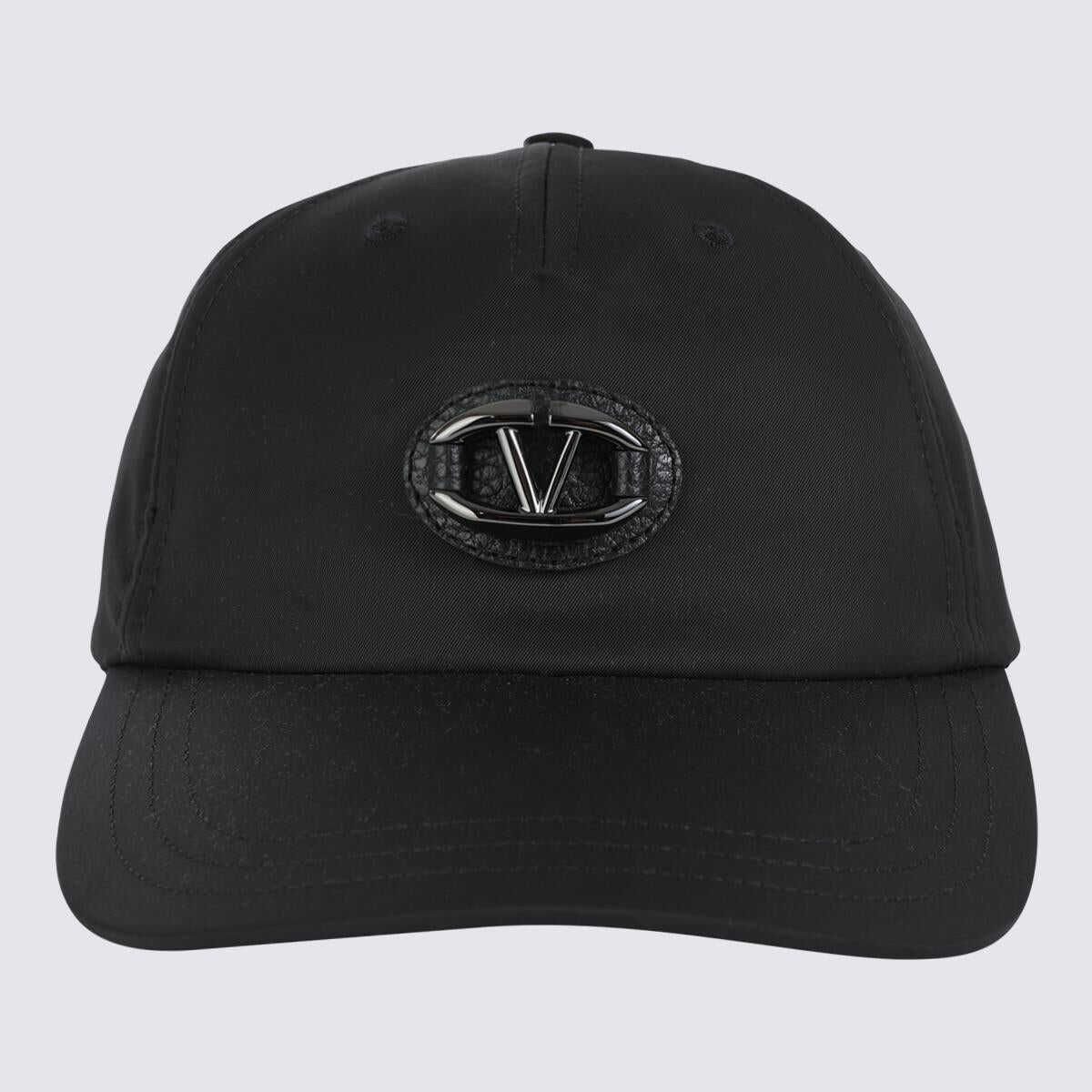 Black cotton baseball cap from Valentino Garavani featuring logo patch at front, rigid visor and adjustable closure at back.