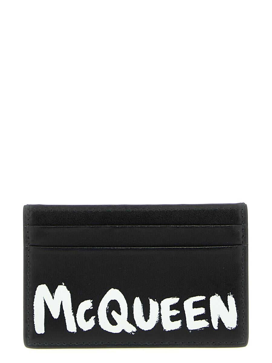 Leather card holder with logo print