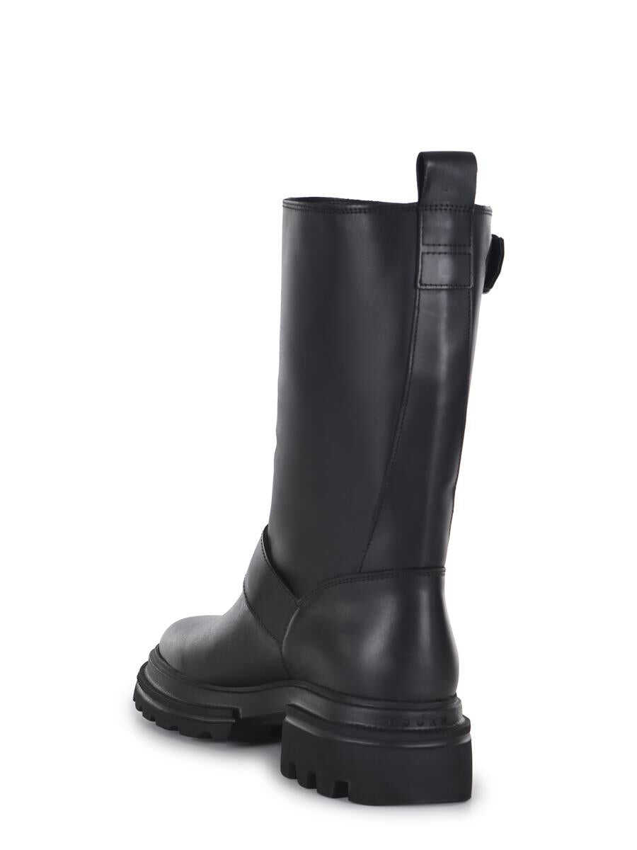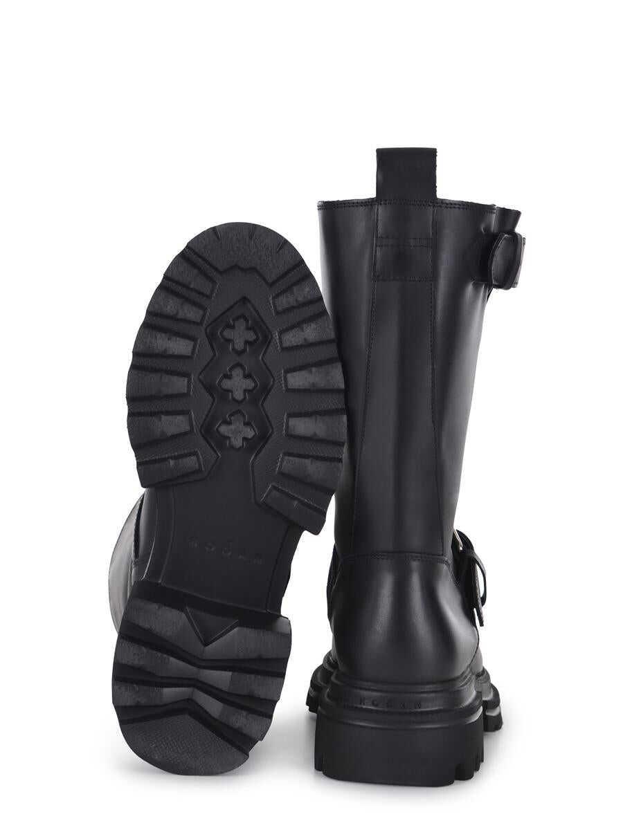 Biker boots Hogan "10-Storey" made of smooth leather in Black. Silver metal buckle detail. Soft insole. Extralight EVA sole with two islands. Soft insole 5cm Total height 5.5cm Sole