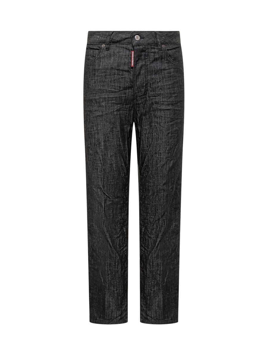 Long jeans. Button closure. Belt loops. Five pockets. Logo patch on the back. Palazzo fit. Medium Crotch and Wide Bottom.