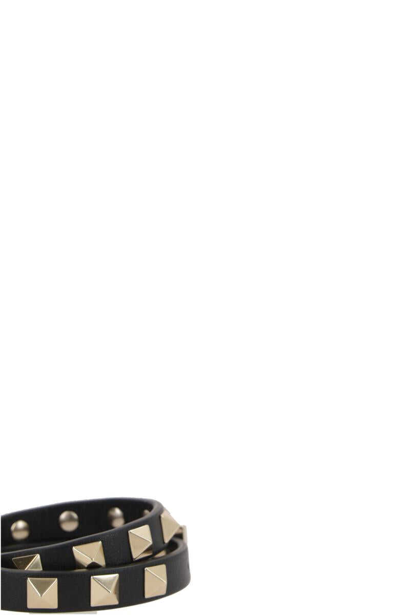Valentino Garavani double-wrap bracelet crafted in black smooth leather adorned with signature platinum-tone metal studs. Featuring adjustable closure with metal buckle and internal embossed logo.
