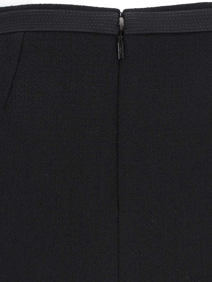 Mini flared skirt in stretch wool-blend crepe. Back zipper closure. Medusa '95 personalization and satin trim at waist.