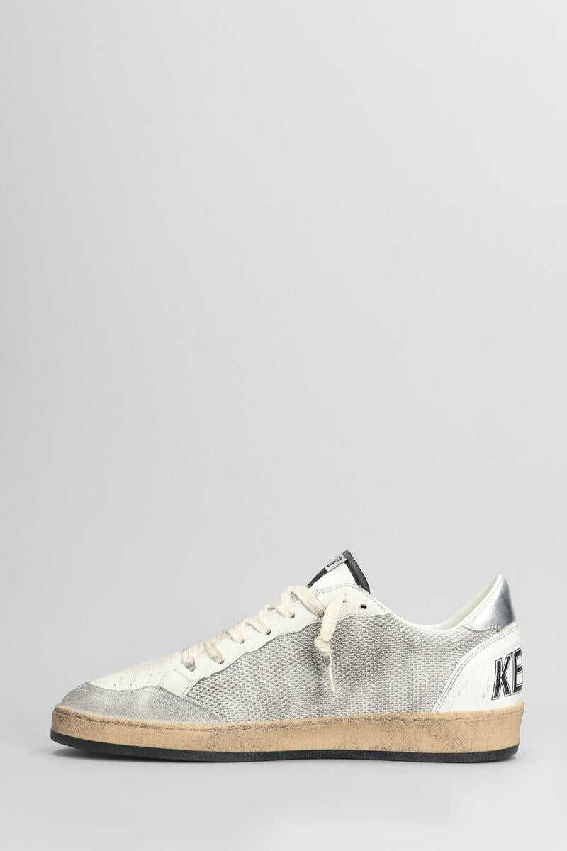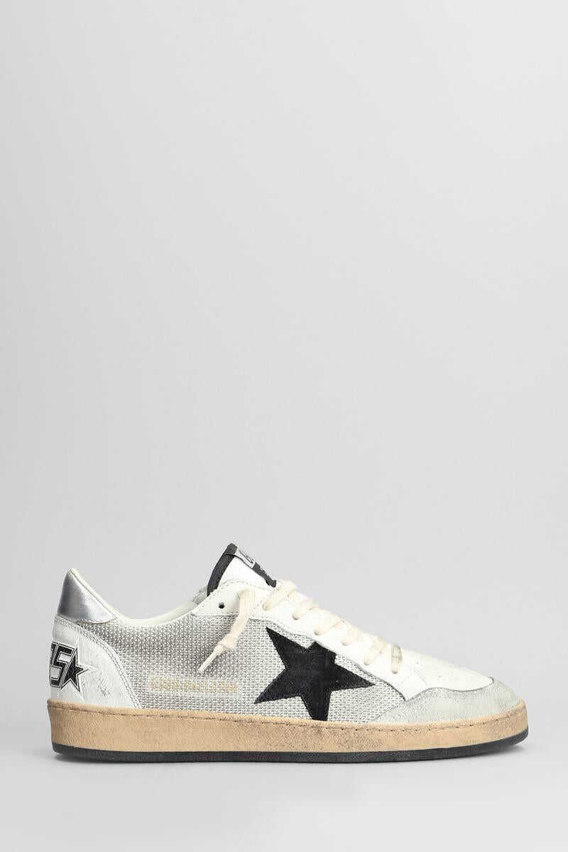 Ball Star Sneakers in white leather and fabric, round toe, laces, logo on upper tongue, perforated upper toe, leather star on side, logo back, rubber sole, 100% leather, Made in Italy