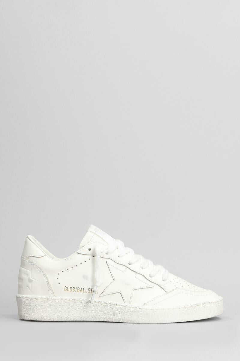 Ball Star Sneakers in white leather, round toe, laces, logo on upper tongue, logo back, star on side, rubber sole, 100% leather, Made in Italy