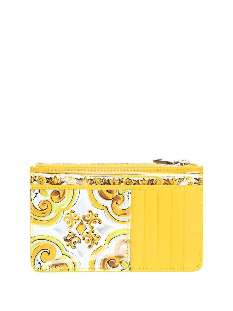 Card holder in shiny calfskin Yellow color Majolica print Metal DG logo 1 zip pocket 1 slit pocket on the front Dimensions: Length 14 cm Height 9 cm
