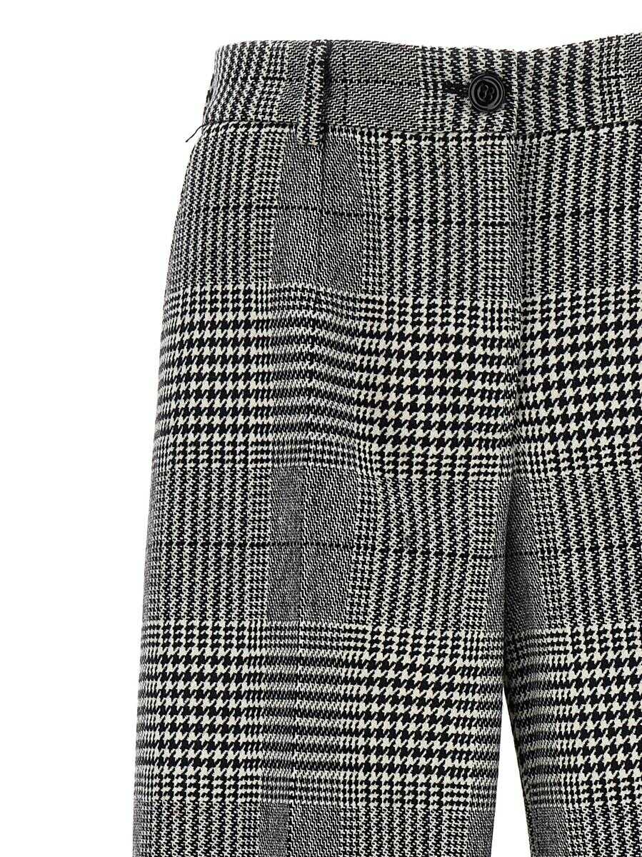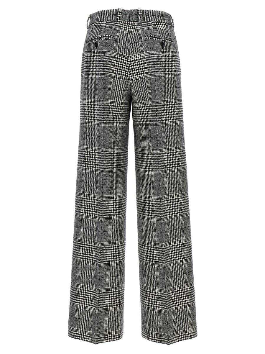 Tailored trousers in cashmere blend with 'pied de poule' pattern, straight leg, stretched pleat, pockets, button and hook zip closure