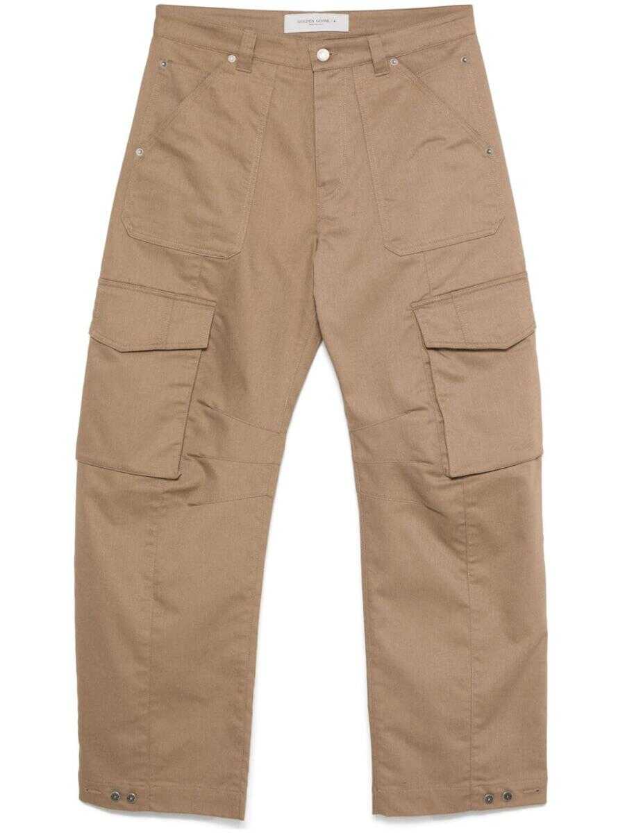 khaki textured finish front button and zip fastening belt loops two side slash pockets coin pockets two side cargo pockets two rear patch pockets straight leg