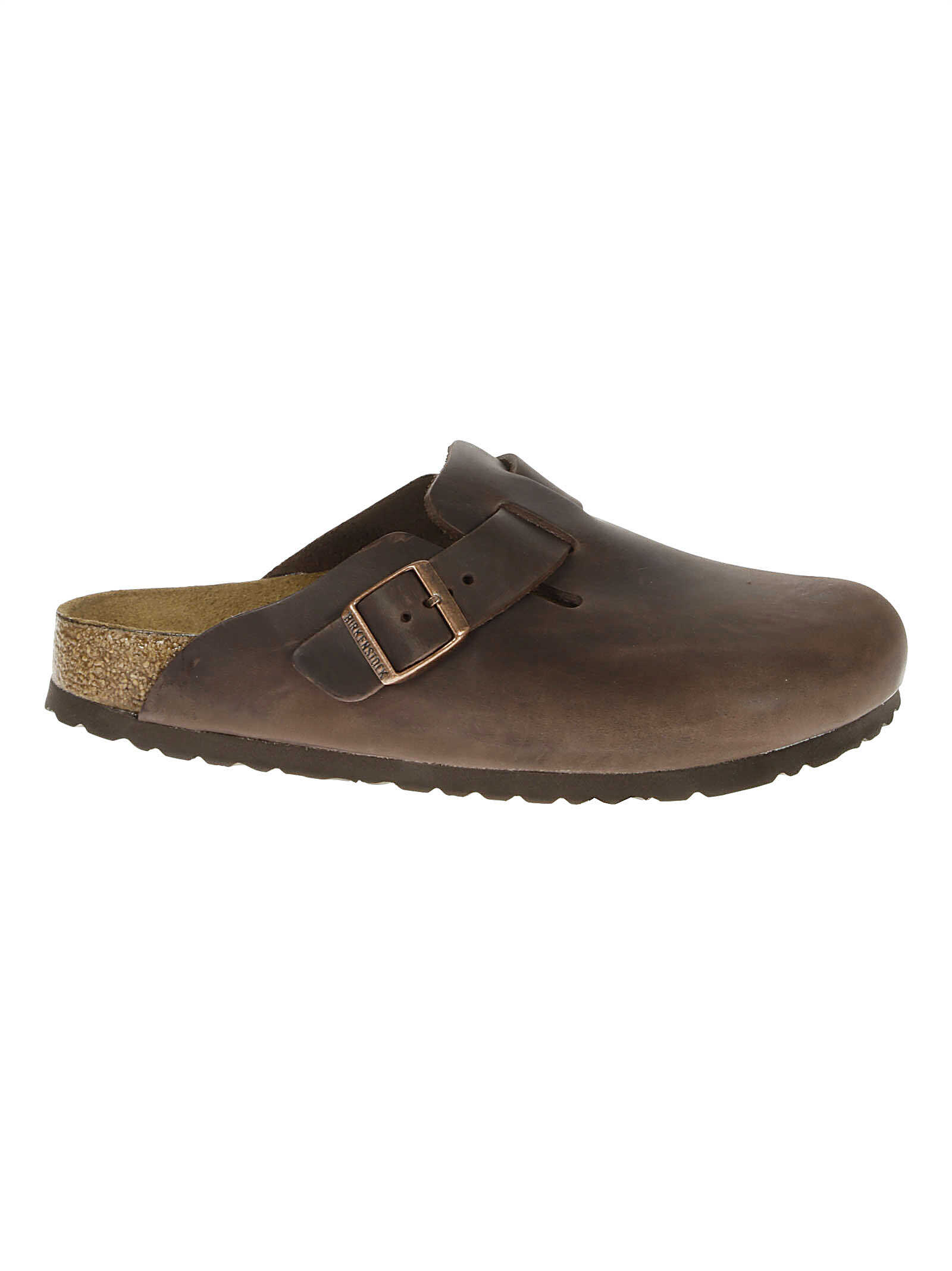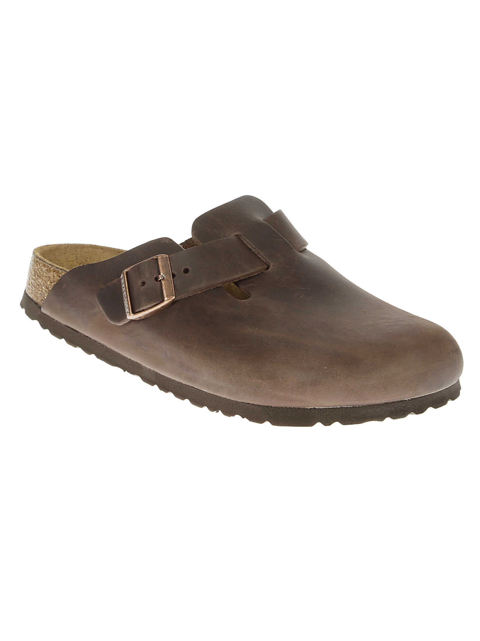 Birkenstock Boston with leather upper, adjustable buckle with logo detail and Cork Latex footbed.