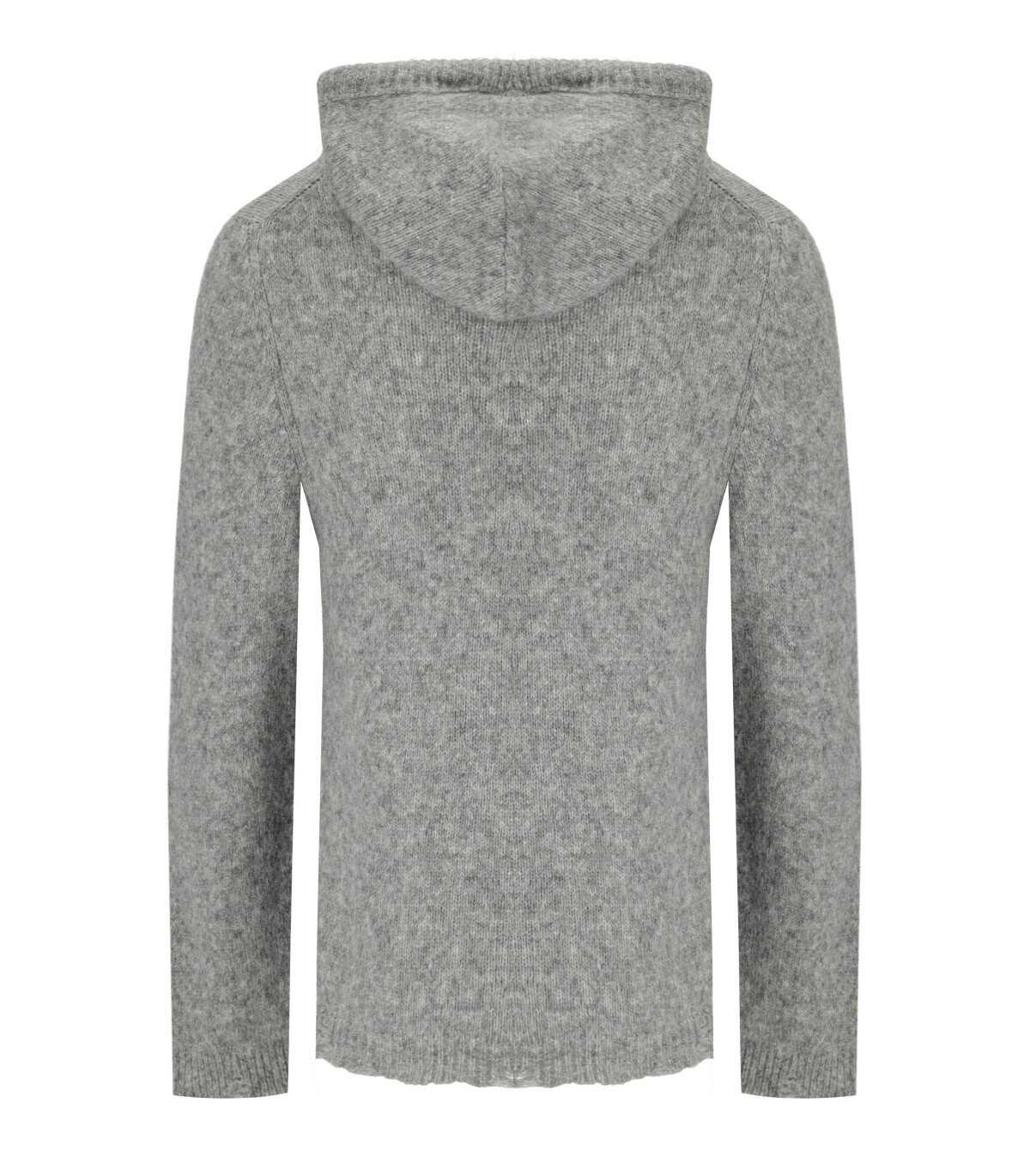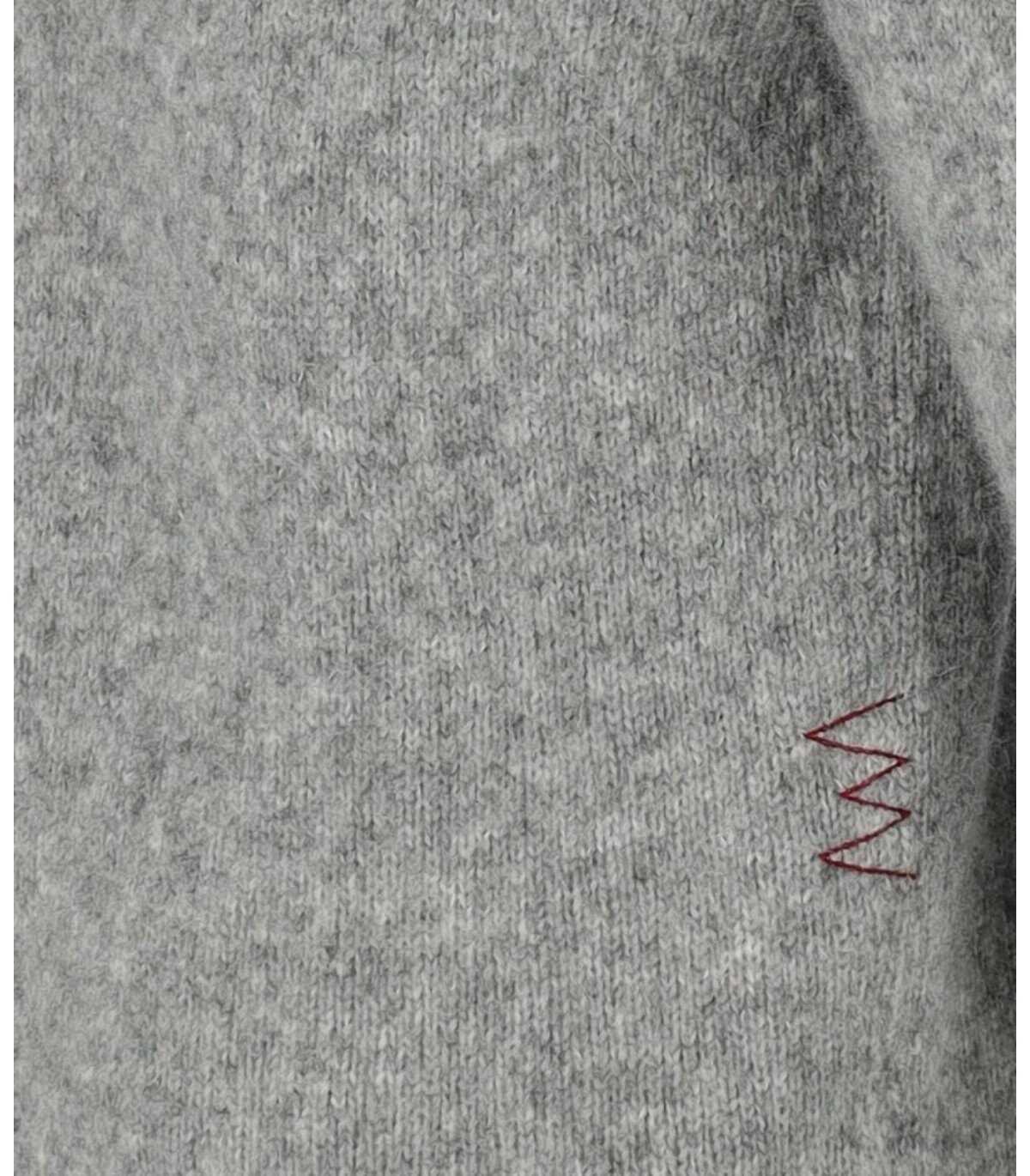 Amaránto sweatshirt made of mixed alpaca wool in gray color. Characterized by long raglan sleeves with ribbed cuffs, it features a high collar with a soft hood adjustable thanks to two intertwined drawstrings. Hem and upper edge of the hood with ribbed texture. Regular fit.