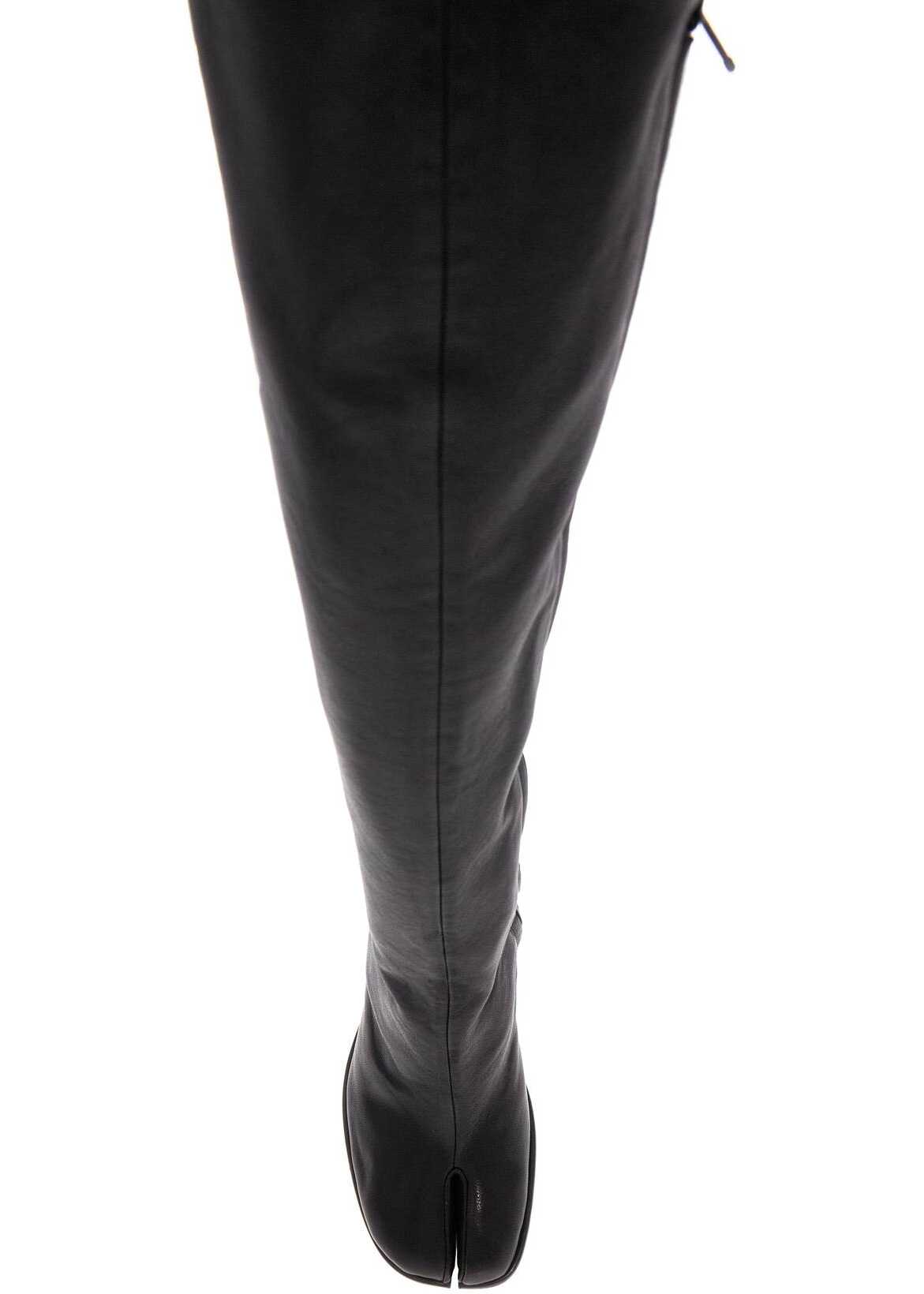 Maison Margiela boots crafted in soft leather and characterized by the Tabi toe. Iconic white stitch on the back. Side zip closure, leather cylindrical heel, leather lining, leather sole.